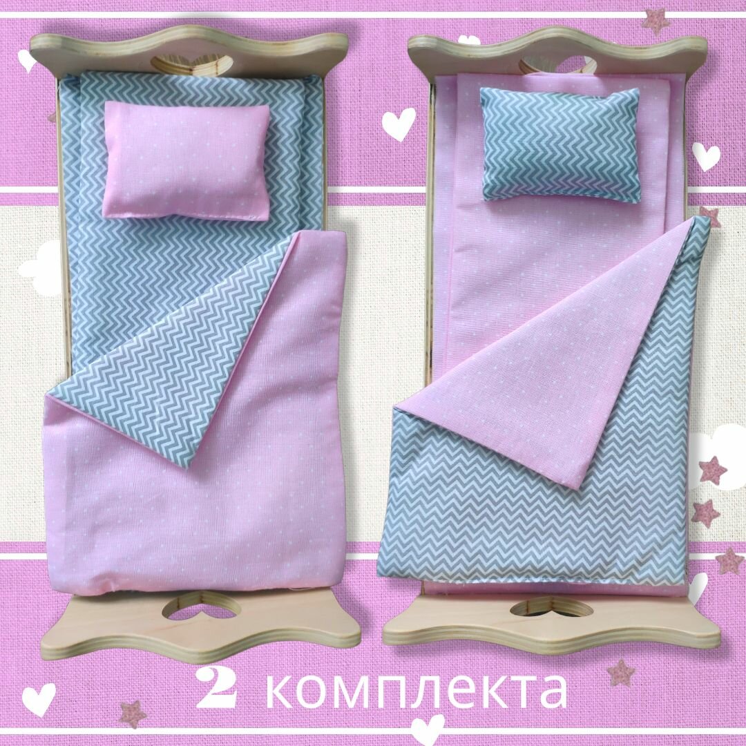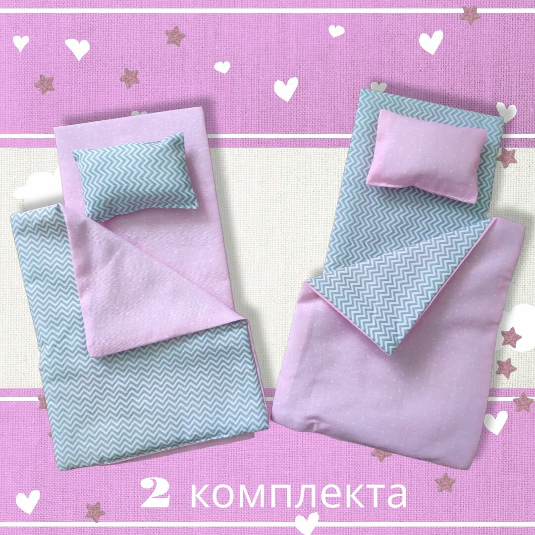 Два комплекта постельного белья для кукол, Барби, коляски, кукольной кроватки, 30 см, Сердечки 670 ₽
