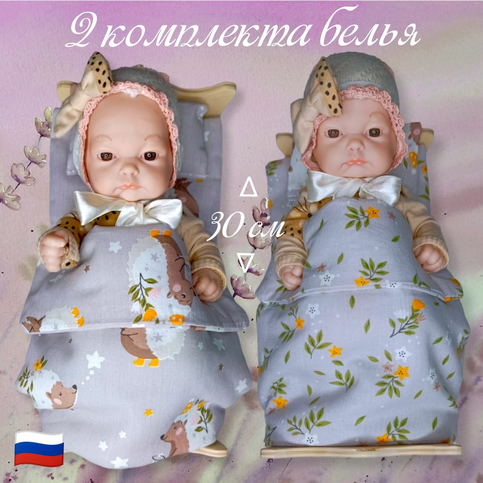 Два комплекта постельного белья для кукол, Барби, коляски, кукольной кроватки, 30 см, Зверюшки 670 ₽