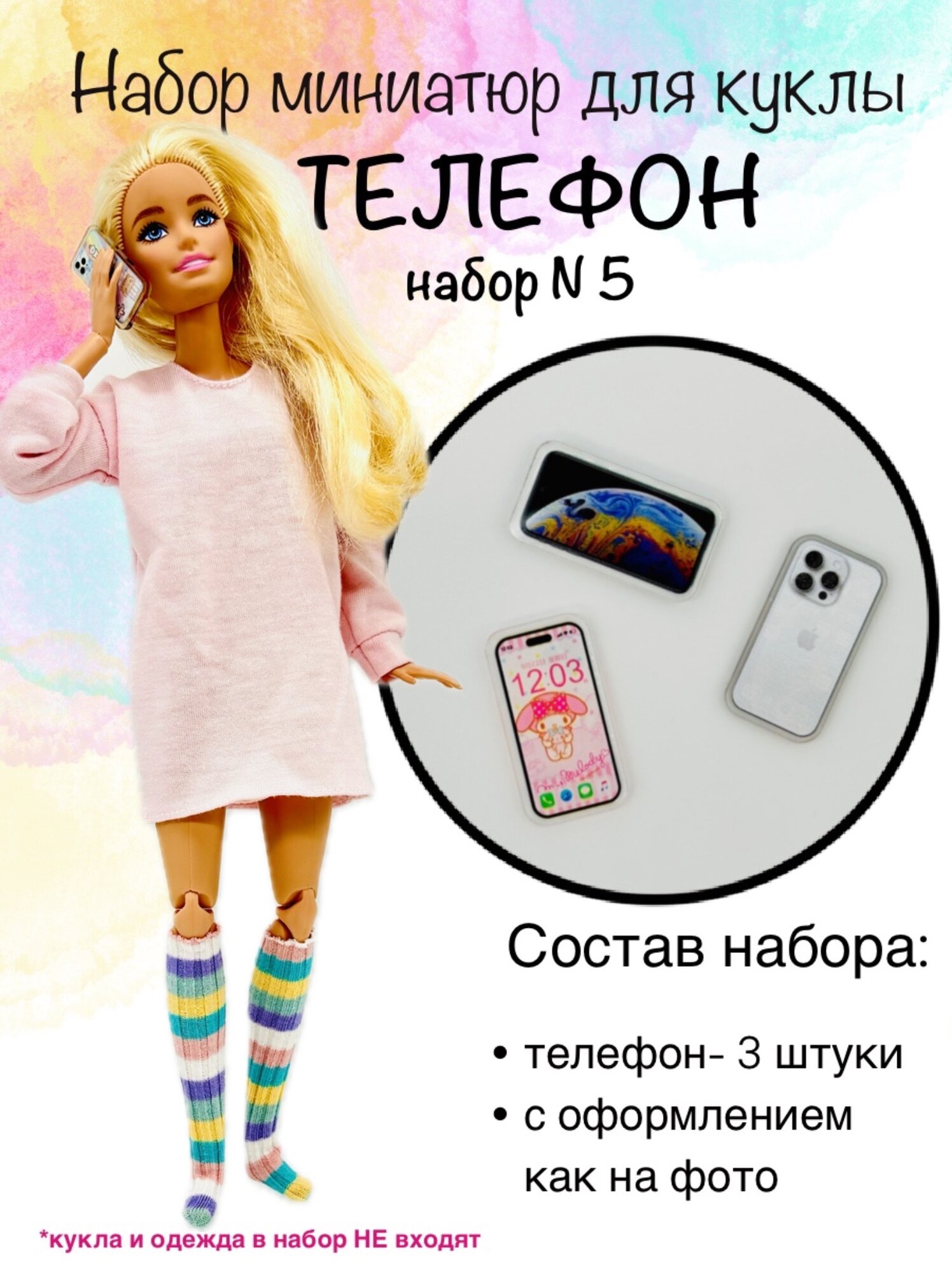 10 цен на Аксессуары для кукол. Набор№5 мини телефонов 3шт