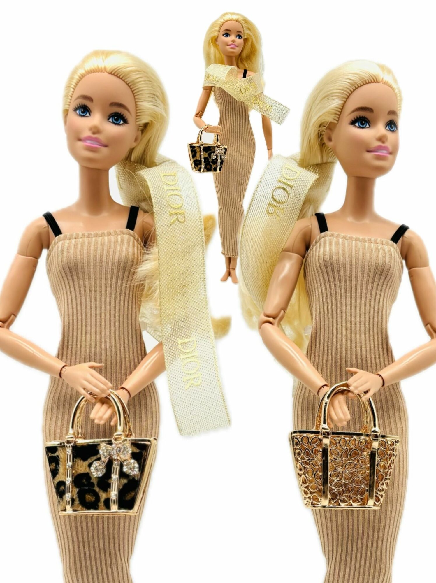 10 цен на Аксессуары для Барби. Набор сумка золото/мех, шарф, iphone для Barbie.