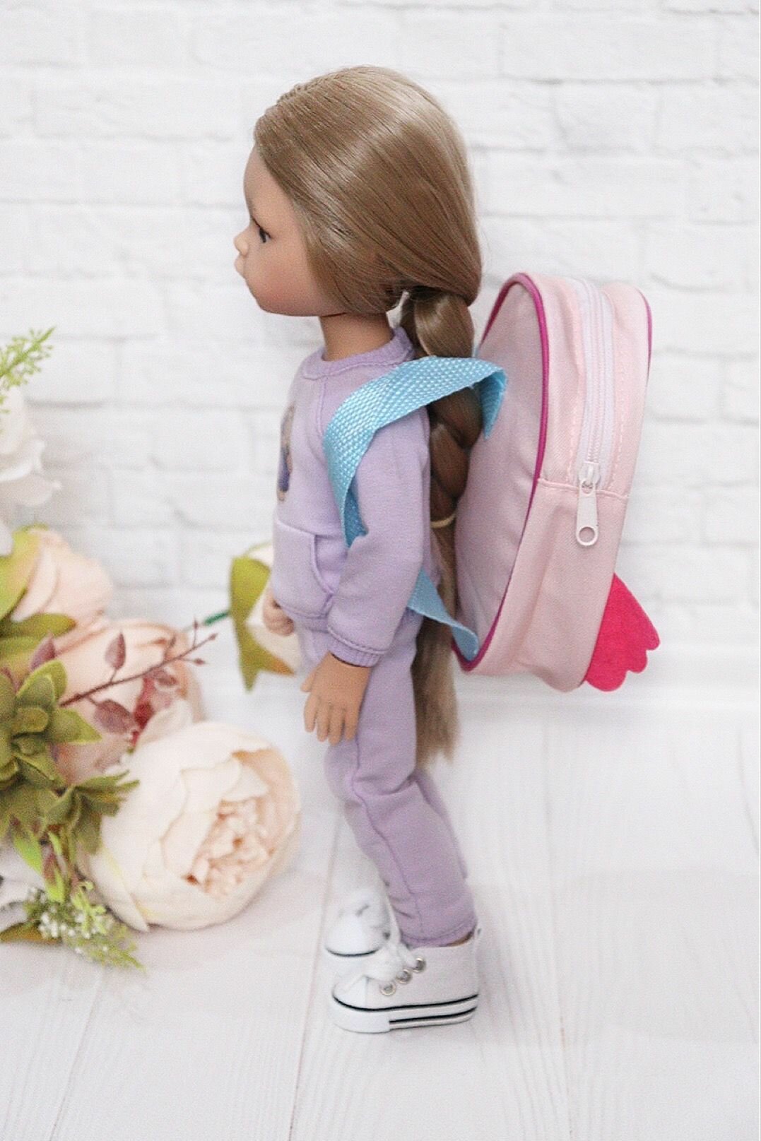 Рюкзак для кукол 32-45 см Paola Reina, Berjuan и др. из экокожи, фиолетовый (цветы) 810 ₽