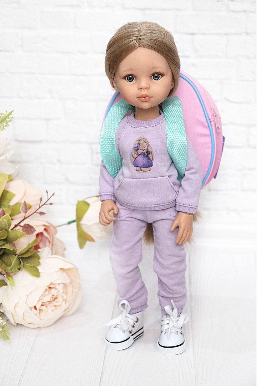 Рюкзак для кукол 32-45 см Paola Reina, Berjuan и др. из экокожи, фиолетовый (цветы) 810 ₽