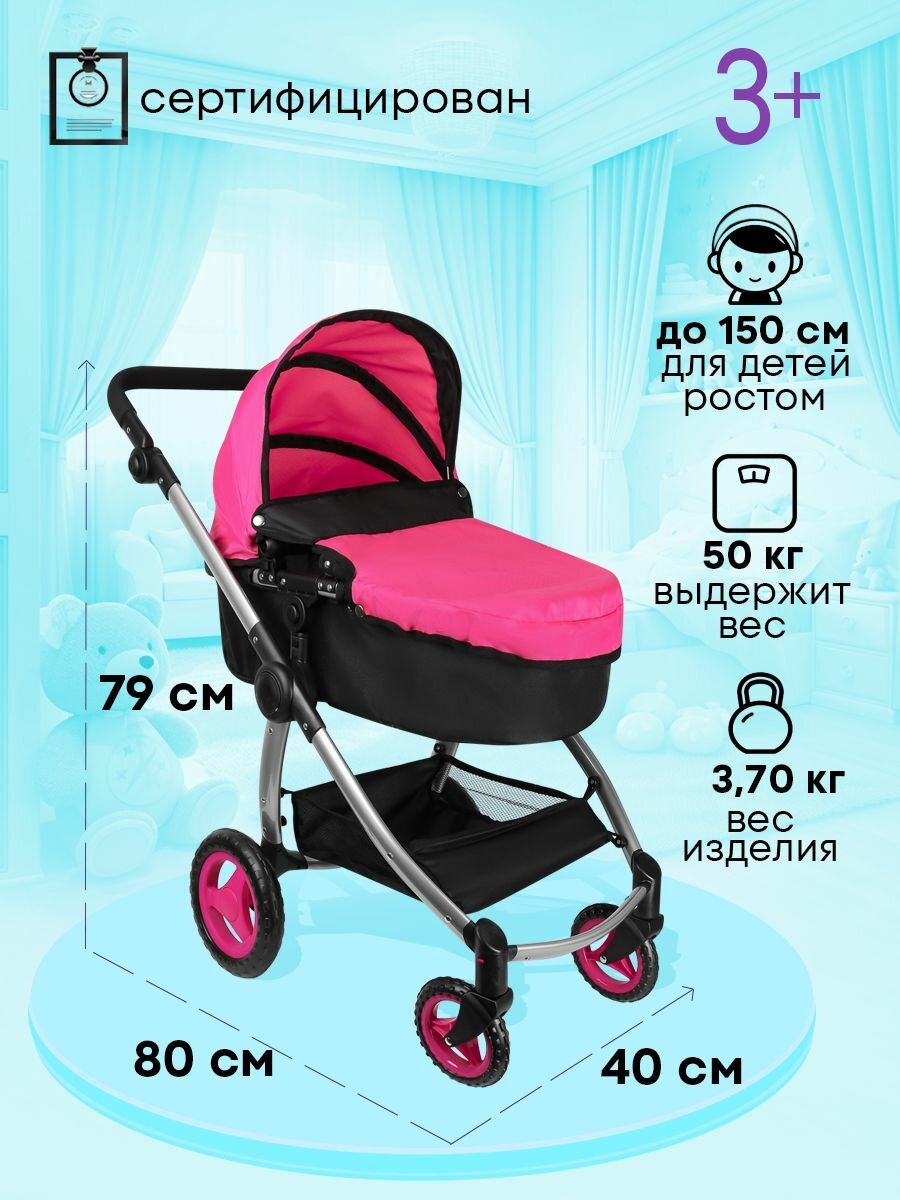 Коляска для кукол до 50 см с люлькой 3в1 размеры 77х44х83см. Подарок для девочек 3+ Артикул 9333-B
