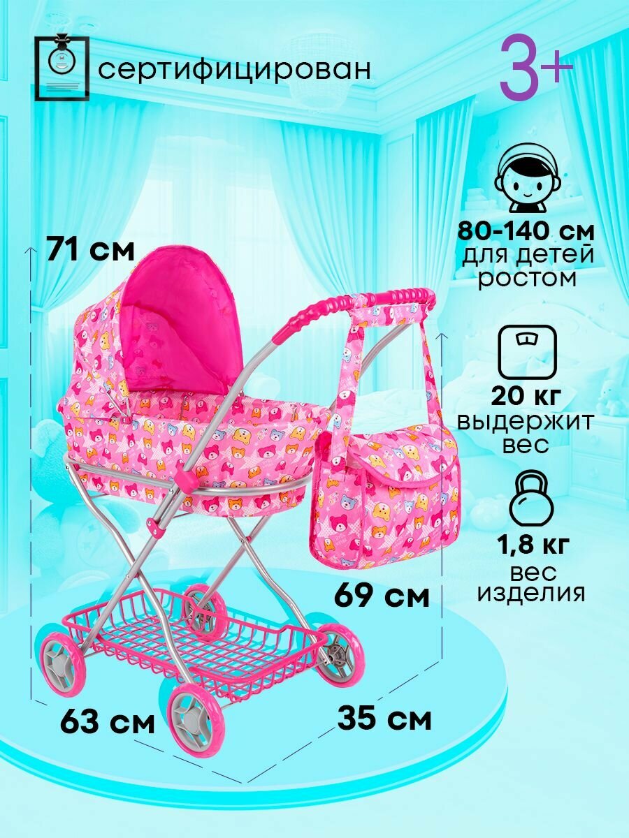 Коляска для кукол до 45 см с люлькой, размеры 63х35х71см. Подарок для девочек 3+. Артикул 9325-E информация: