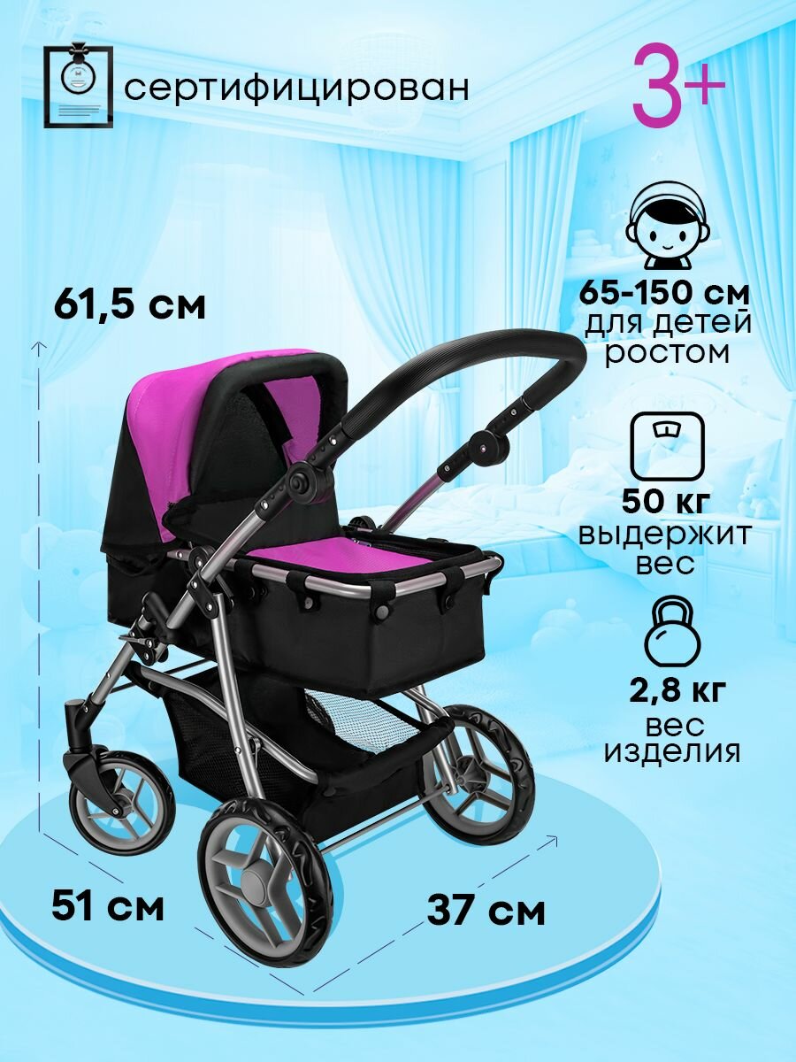 Коляска-трансформер для кукол до 44 см. 3в1 размеры 51х37х61,5см. Подарок для девочек 3+ Артикул 9651BS-B информация: