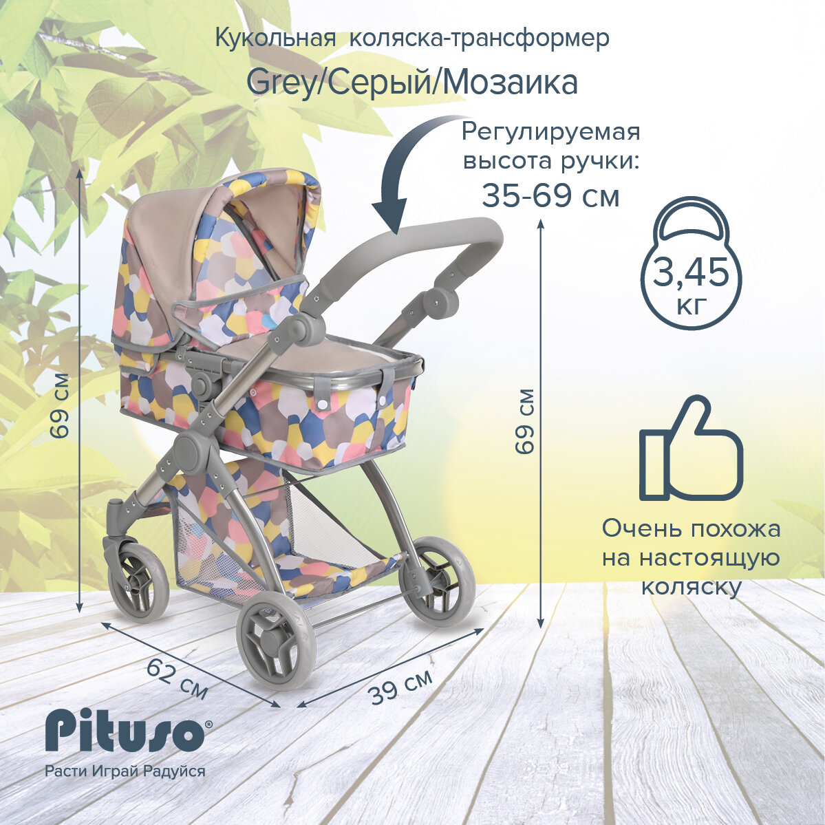 Игрушечная коляска для куклы Pituso коляска-трансформер с корзиной для мелочей, 68.5х40х80 см, серый/мозайка информация: