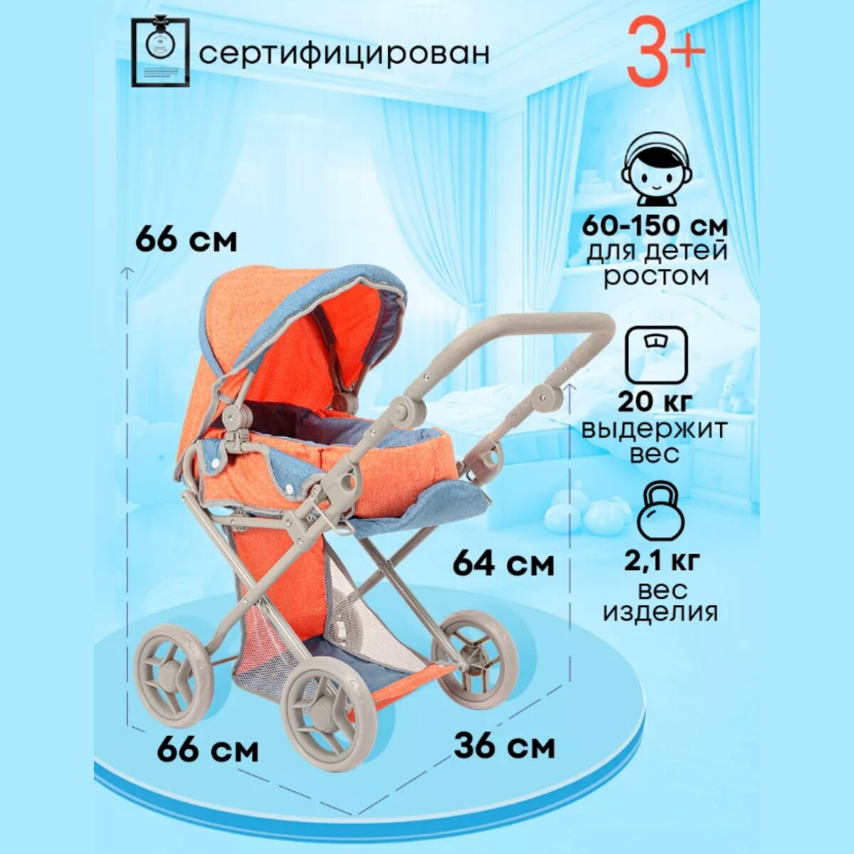 Коляска для кукол до 50 см с люлькой 3в1 размеры 77х44х83см. Подарок для девочек 3+ Артикул 9333-B