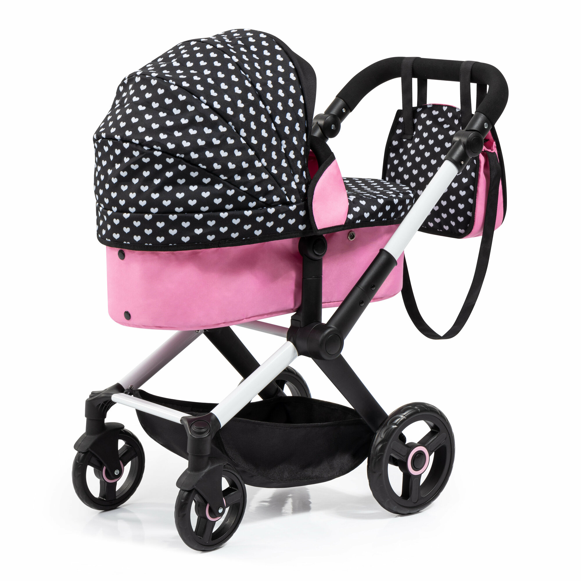 Коляска для кукол Xeo розово-черная с сердечками информация: