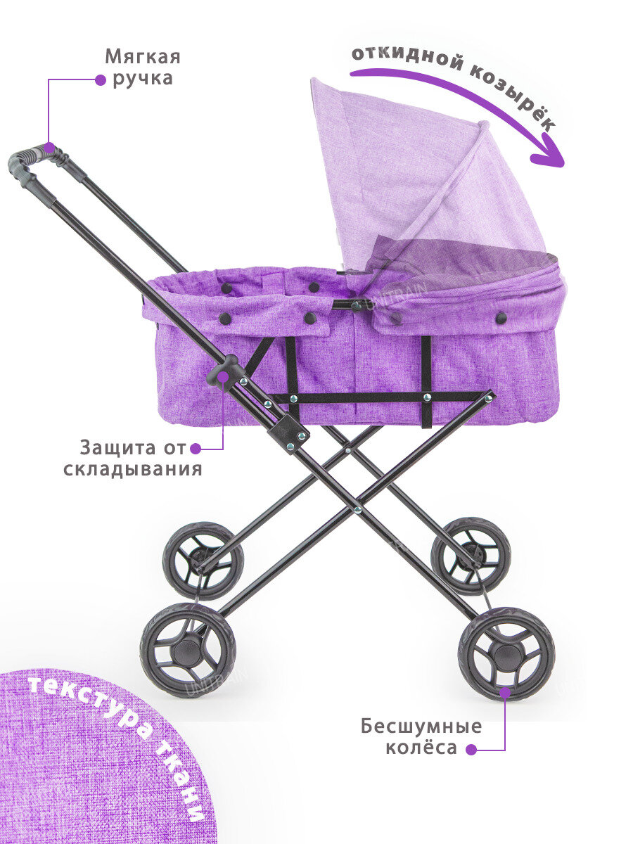 Коляска-люлька UniTrain, складная, для кукол, сиреневая информация: