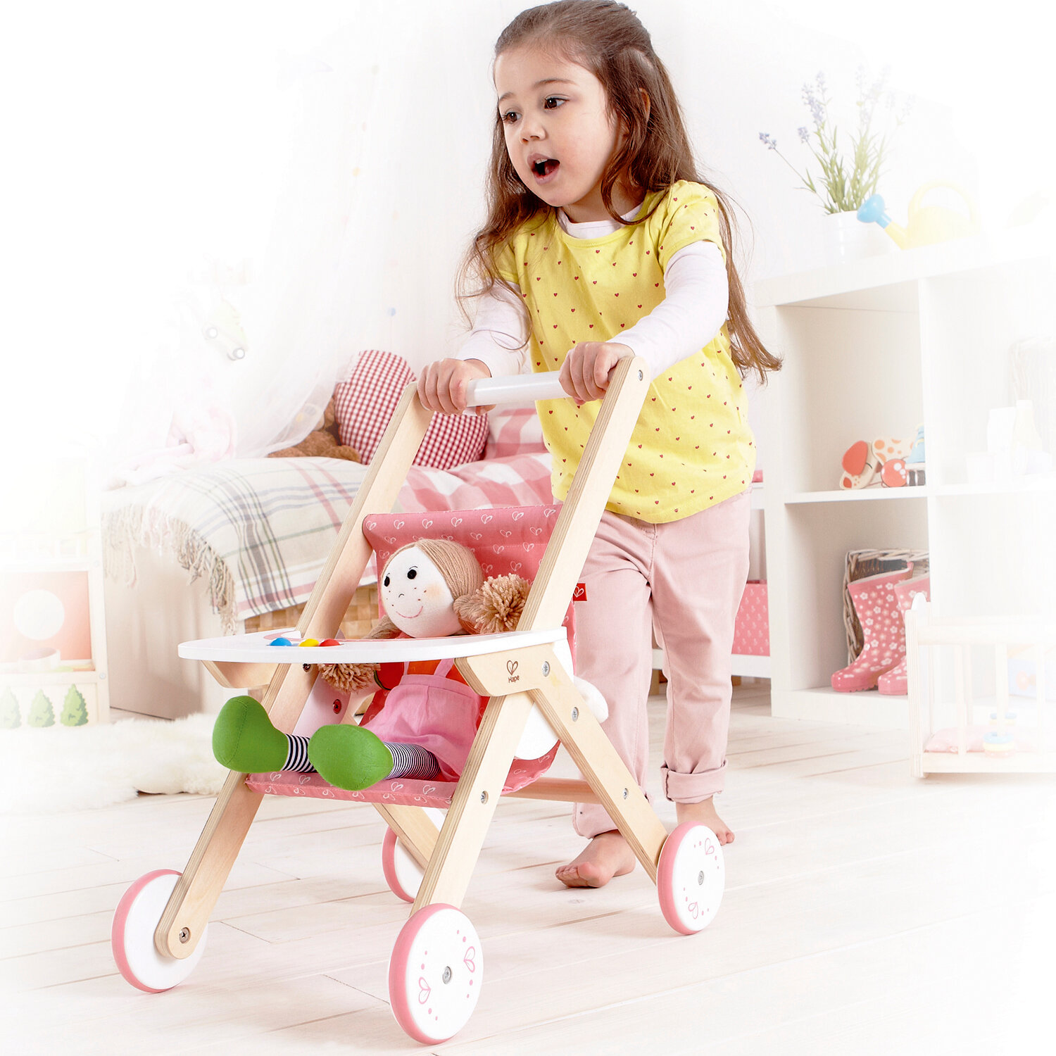 Отзывы на Игрушечная прогулочная коляска для кукол деревянная Hape E3603_HP