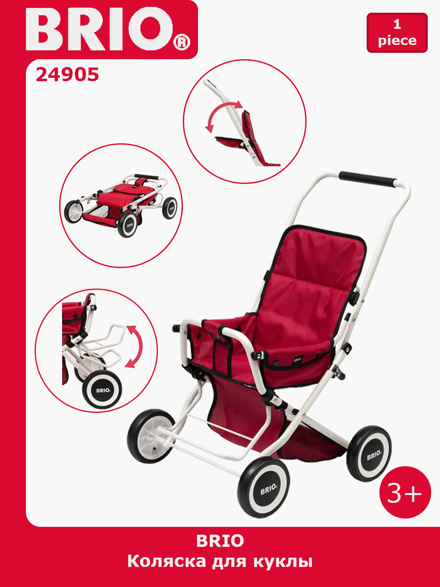 Прогулочная коляска BRIO 24905, для кукол, складна, красная, 4 колеса информация: