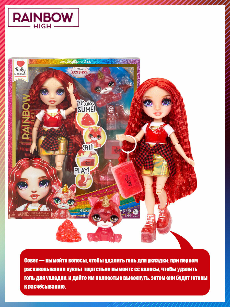 MGA Rainbow High Набор Ruby anderson meet Razzberry /"Радуга со слизью домашним животным", Children's fashion doll toys информация: