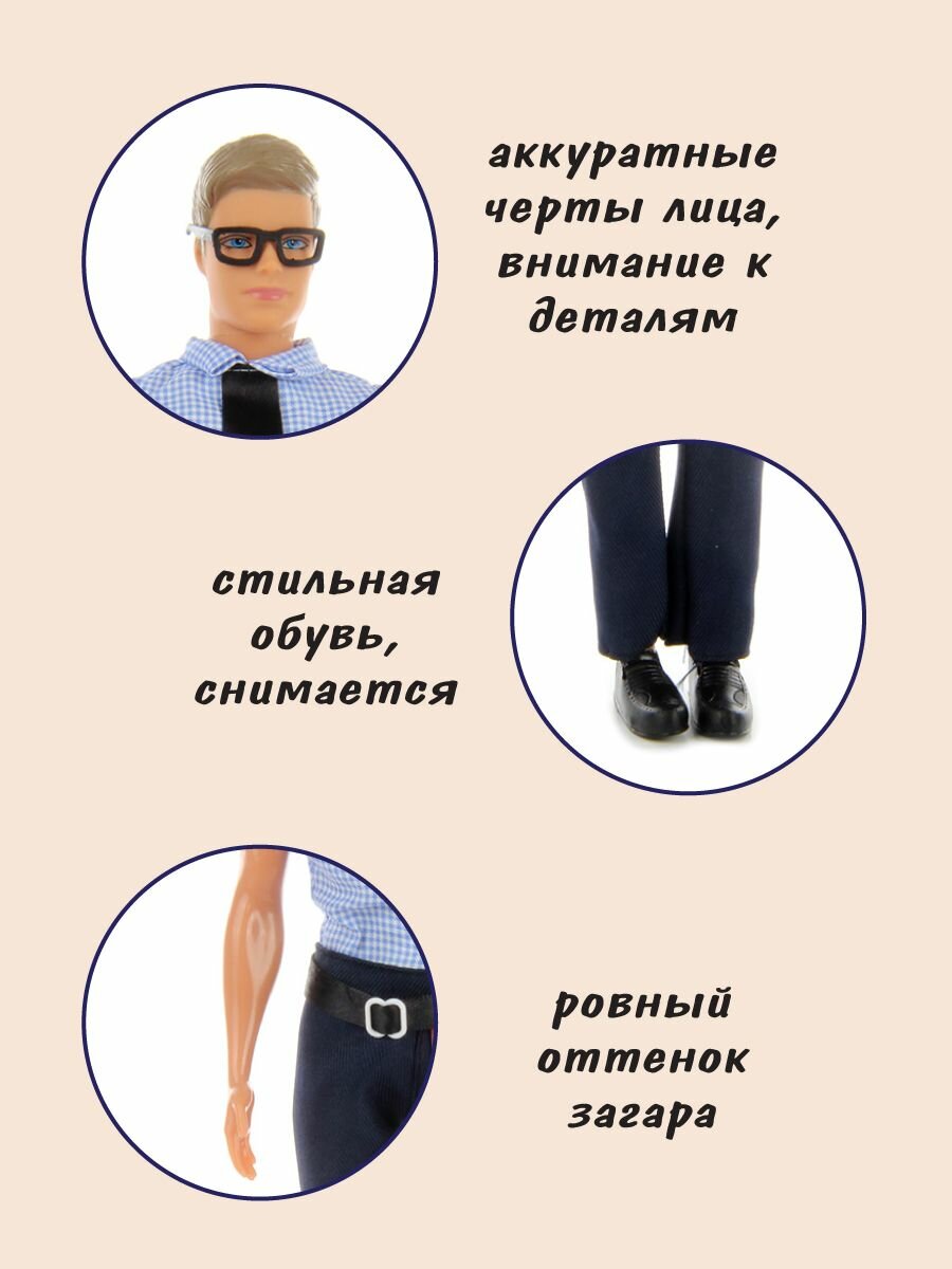 Детская кукла мальчик Кевин учитель с ученицей, 31 см, Veld Co / Куколка кен для барби с одеждой и аксессуарами для девочки информация:
