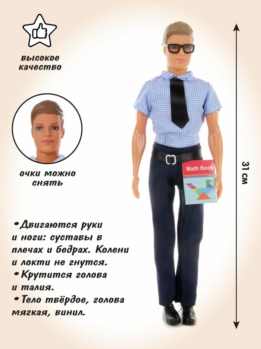 10 цен на Детская кукла мальчик Кевин учитель с ученицей, 31 см, Veld Co / Куколка кен для барби с одеждой и аксессуарами для девочки