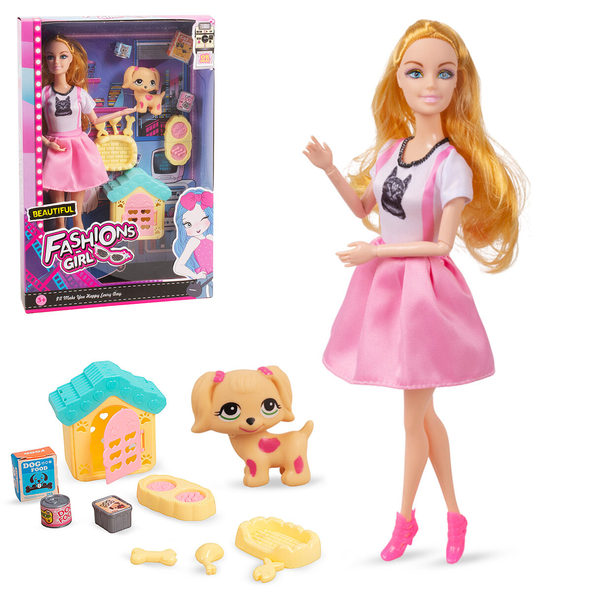 10 цен на Кукла Модница с питомцем и аксессуарами 29 см цвет розовый (WD2023-11)