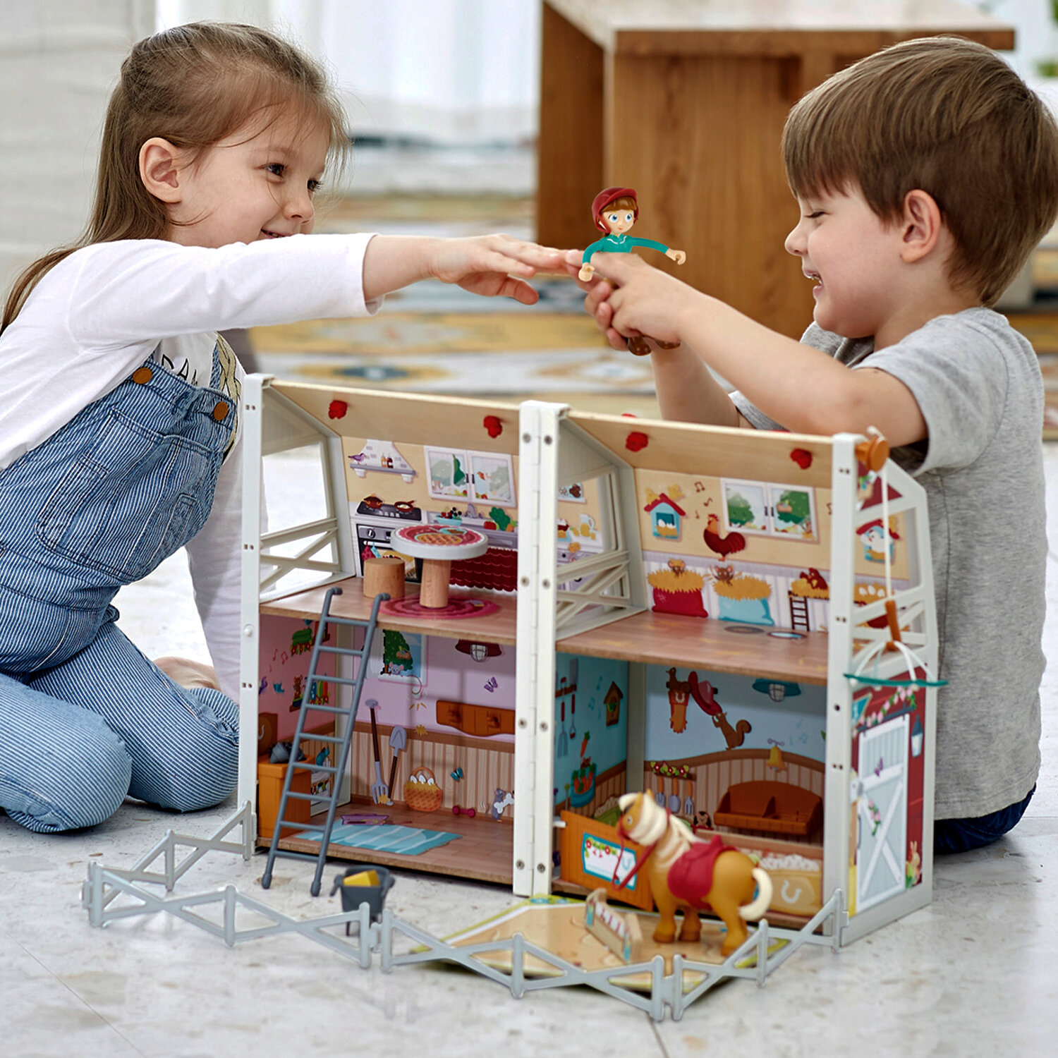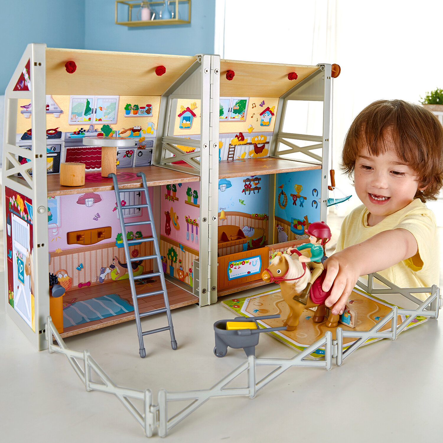 10 цен на Деревянный кукольный домик Hape "Моя любимая ферма", с мебелью 25 предметов, 1 куклой в наборе, для кукол 15 см E3409_HP
