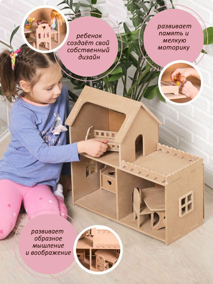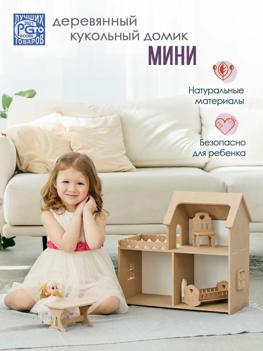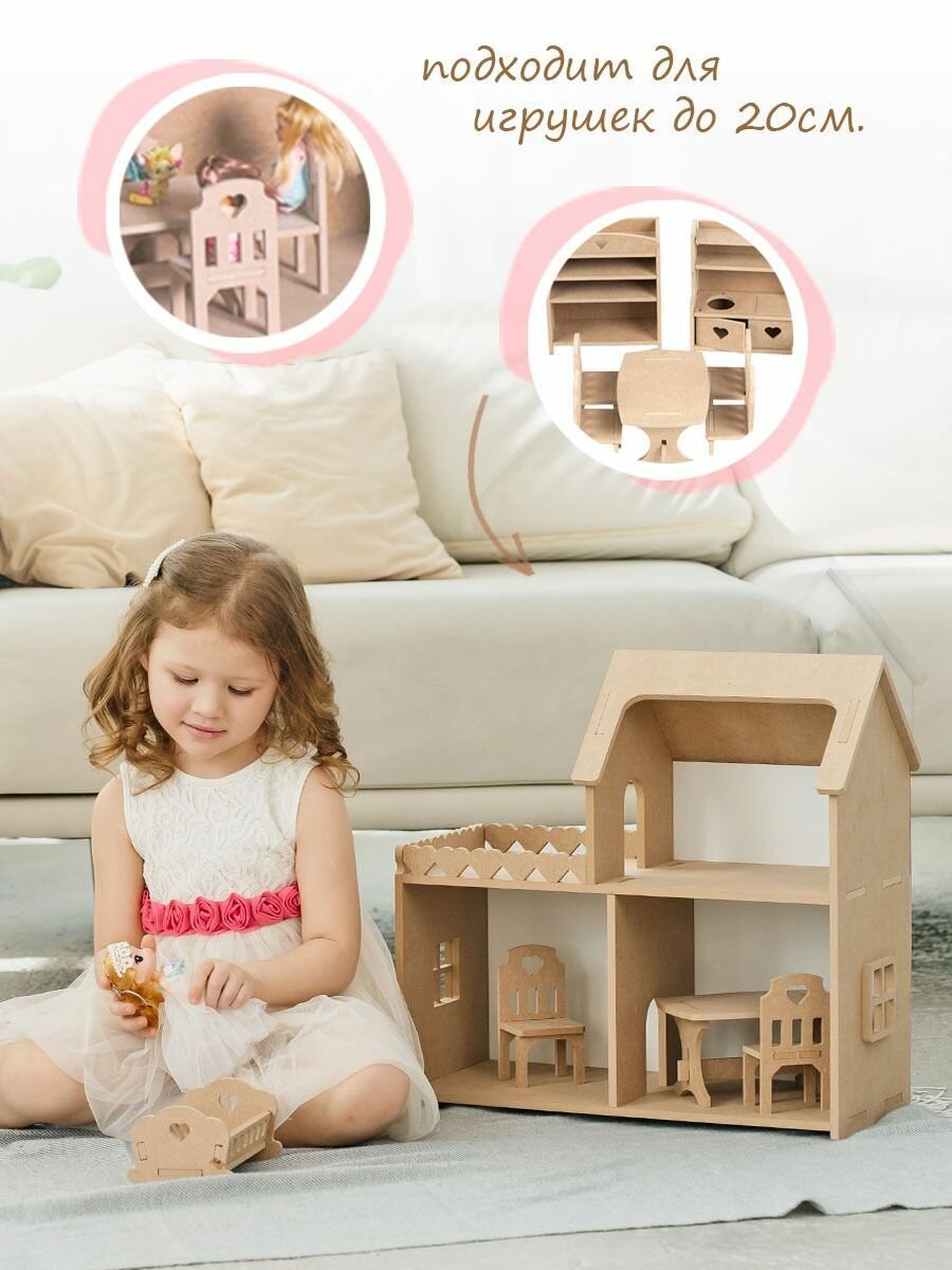 Кукольный домик деревянный Мини для кукол Барби до 20 см без окрашивания информация: