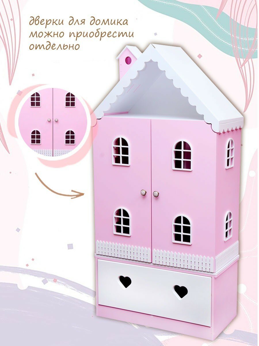 Домик для кукол Pema kids с комодом Луиза Бело-розовый. Шкаф для хранения игрушек, книг информация: