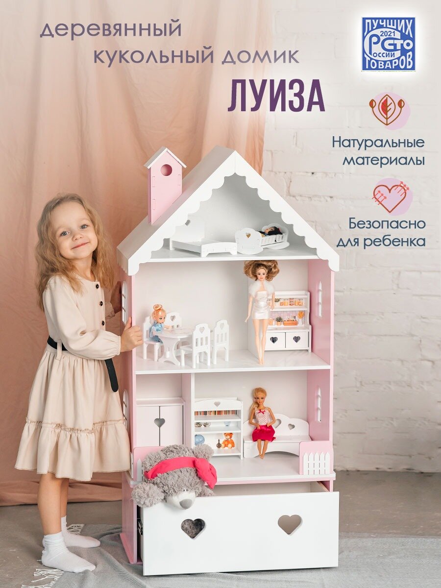 Отзывы на Домик для кукол Pema kids с комодом Луиза Бело-розовый. Шкаф для хранения игрушек, книг