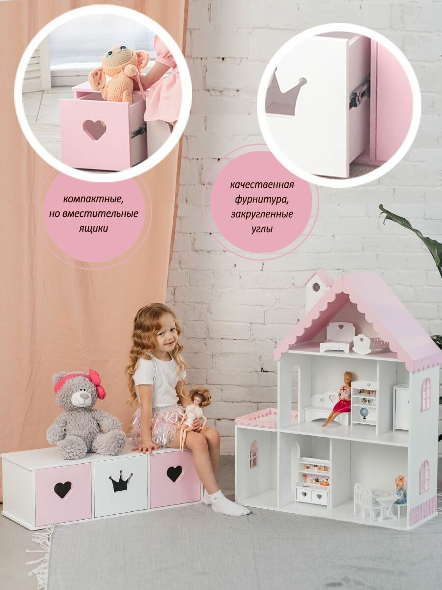 10 цен на Комод для кукольного домика "Снежана", бело-розовый