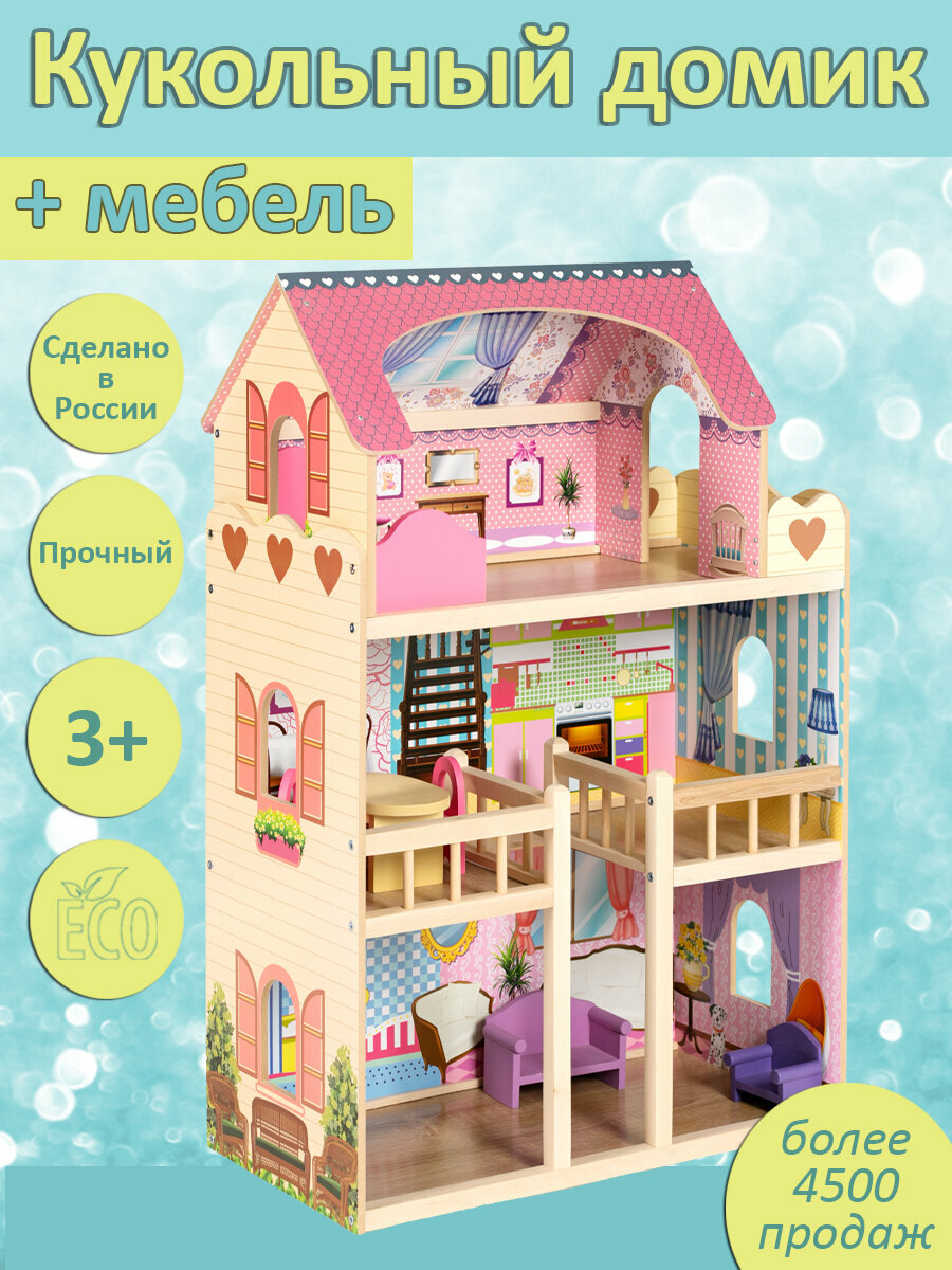 10 цен на Кукольный домик с мебелью для кукол и лол Варя деревянный