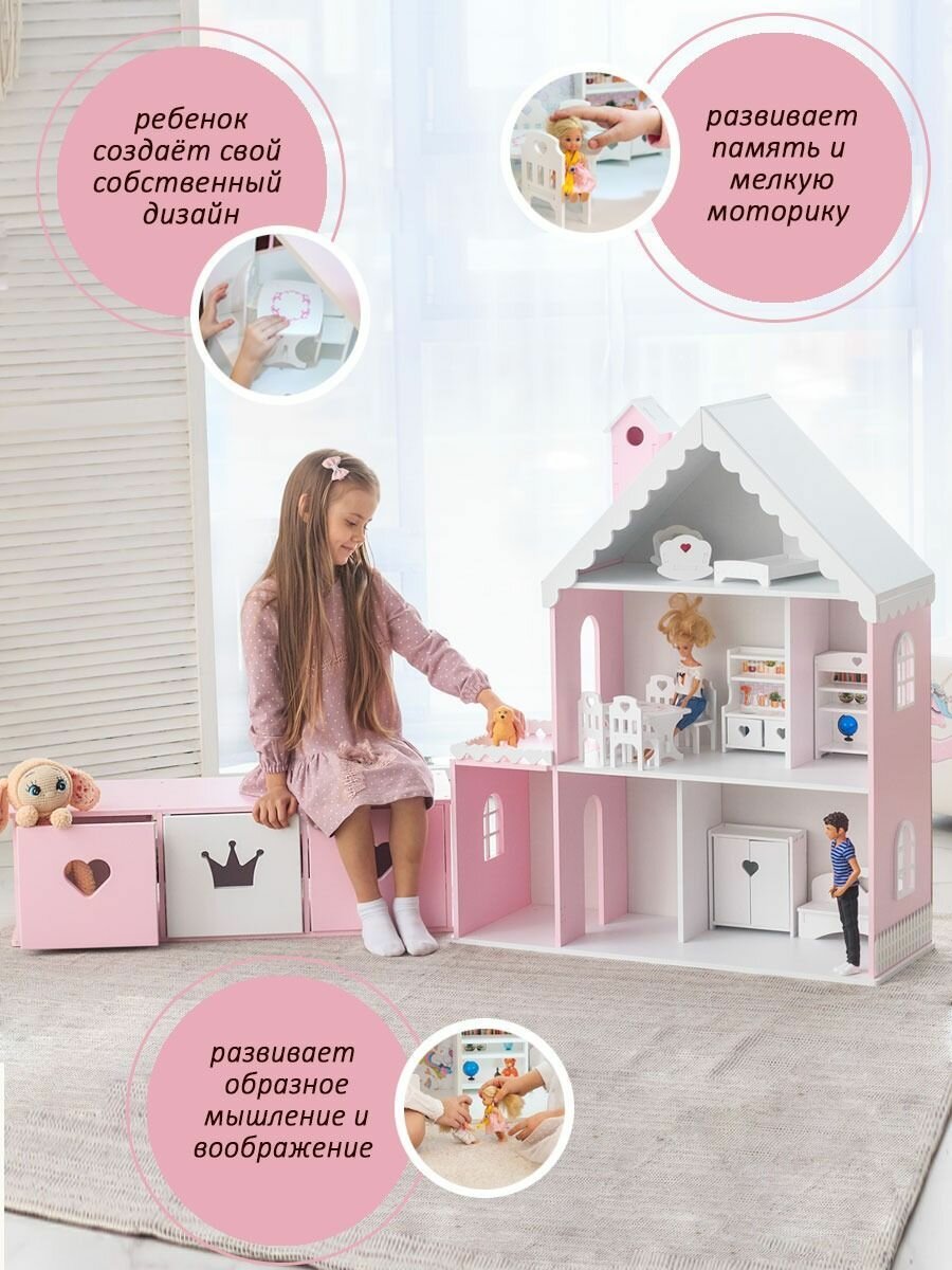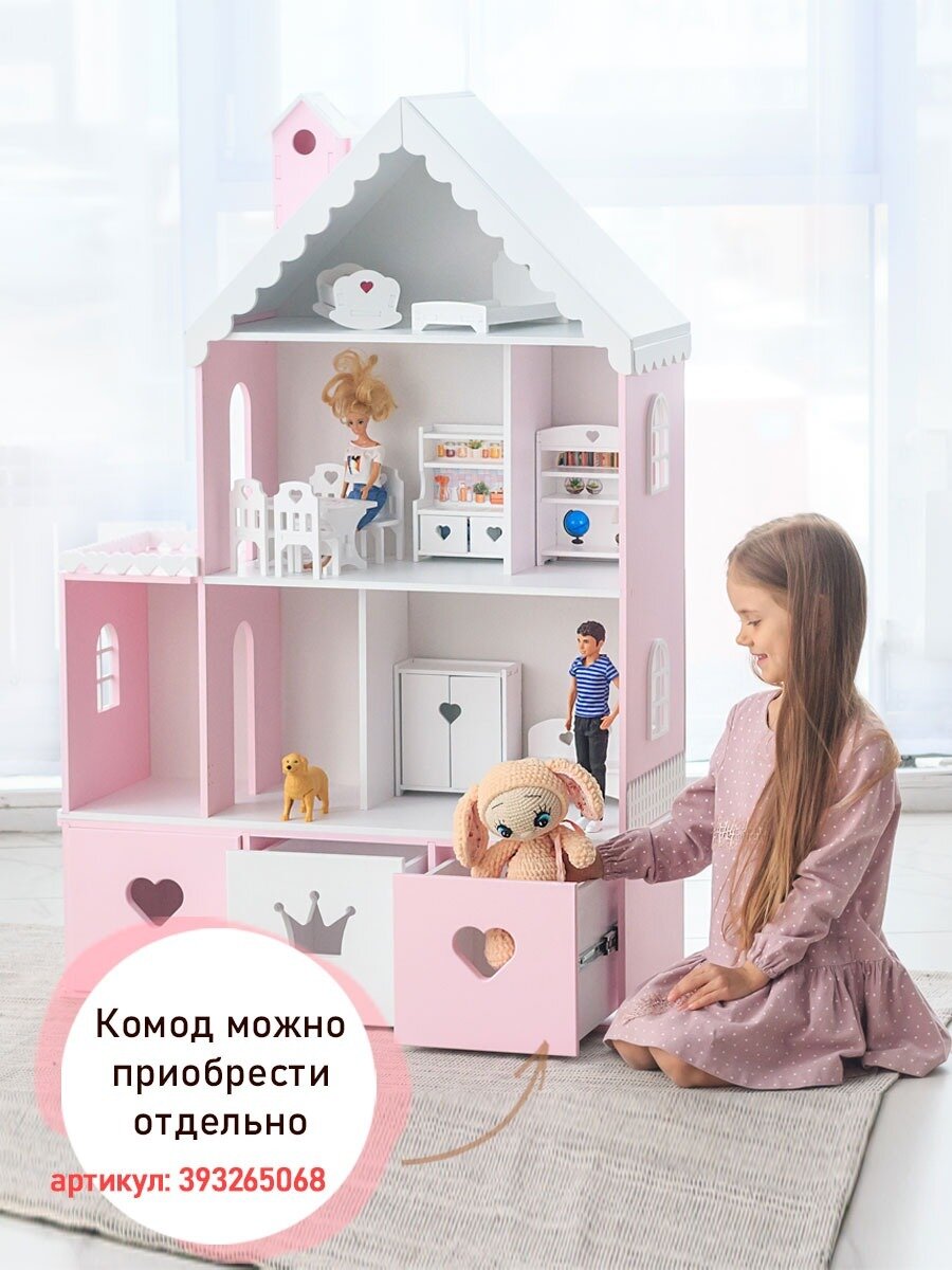 10 цен на Кукольный домик деревянный Снежана для кукол до 32 см розово-белый
