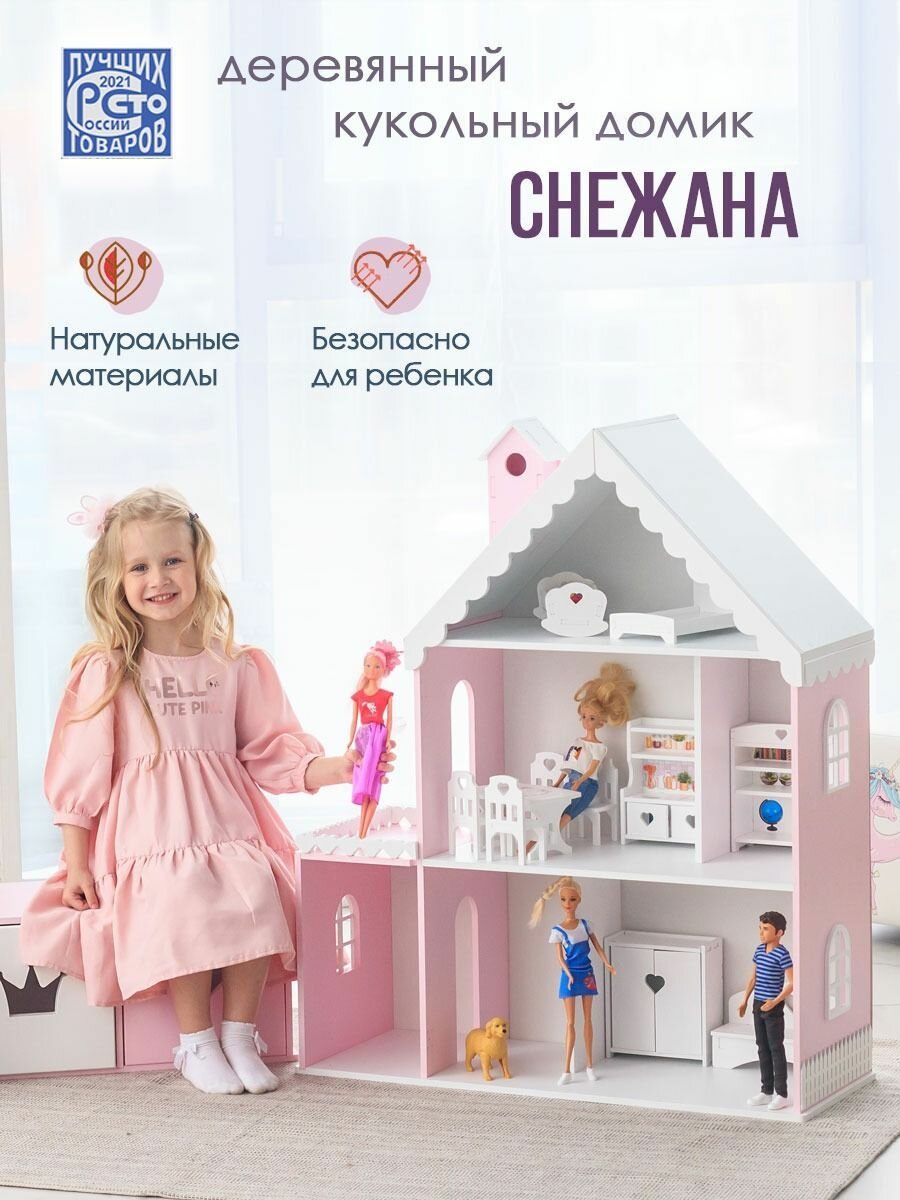 Кукольный домик деревянный Снежана для кукол до 32 см розово-белый информация: