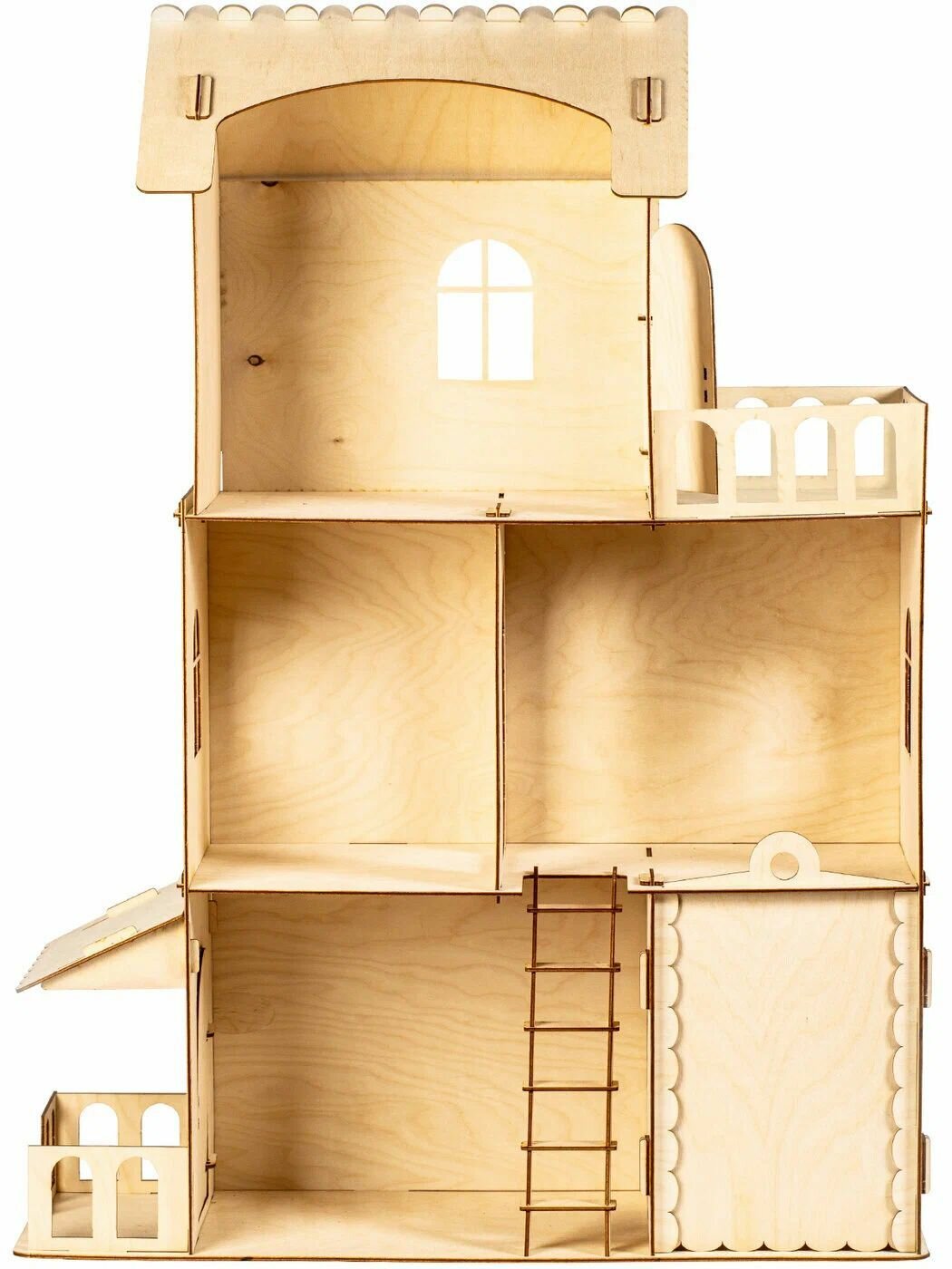 Деревянный Кукольный домик "Малый" (3 этажа) для кукол 7-13 см