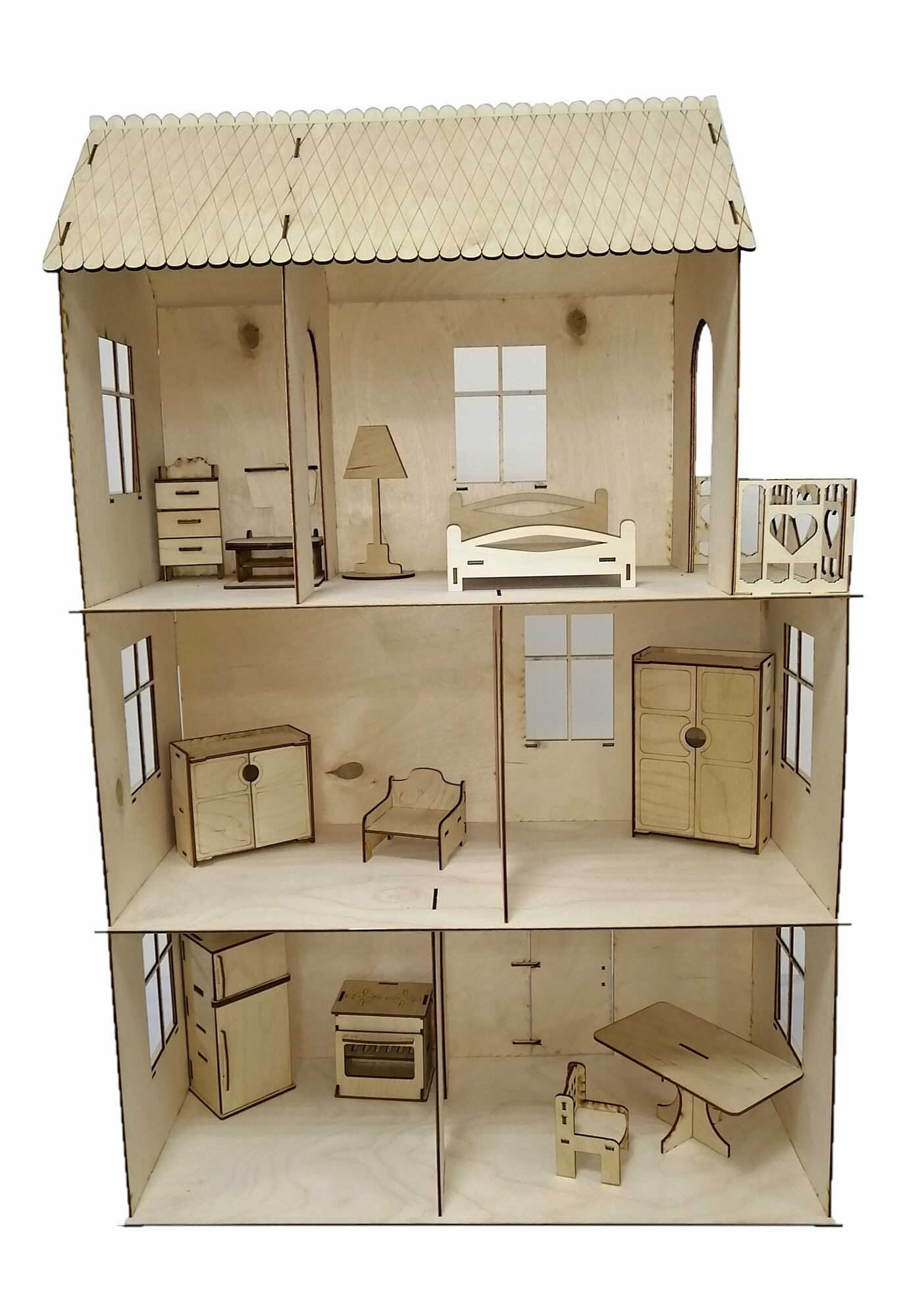 Деревянный Кукольный домик "Малый" (3 этажа) для кукол 7-13 см