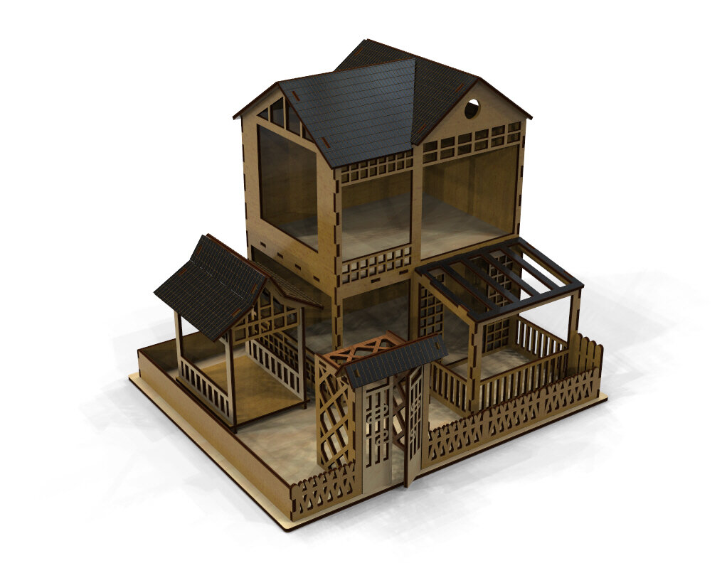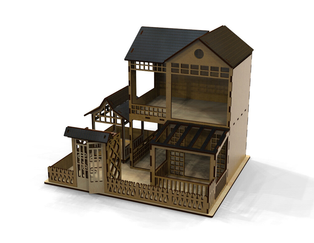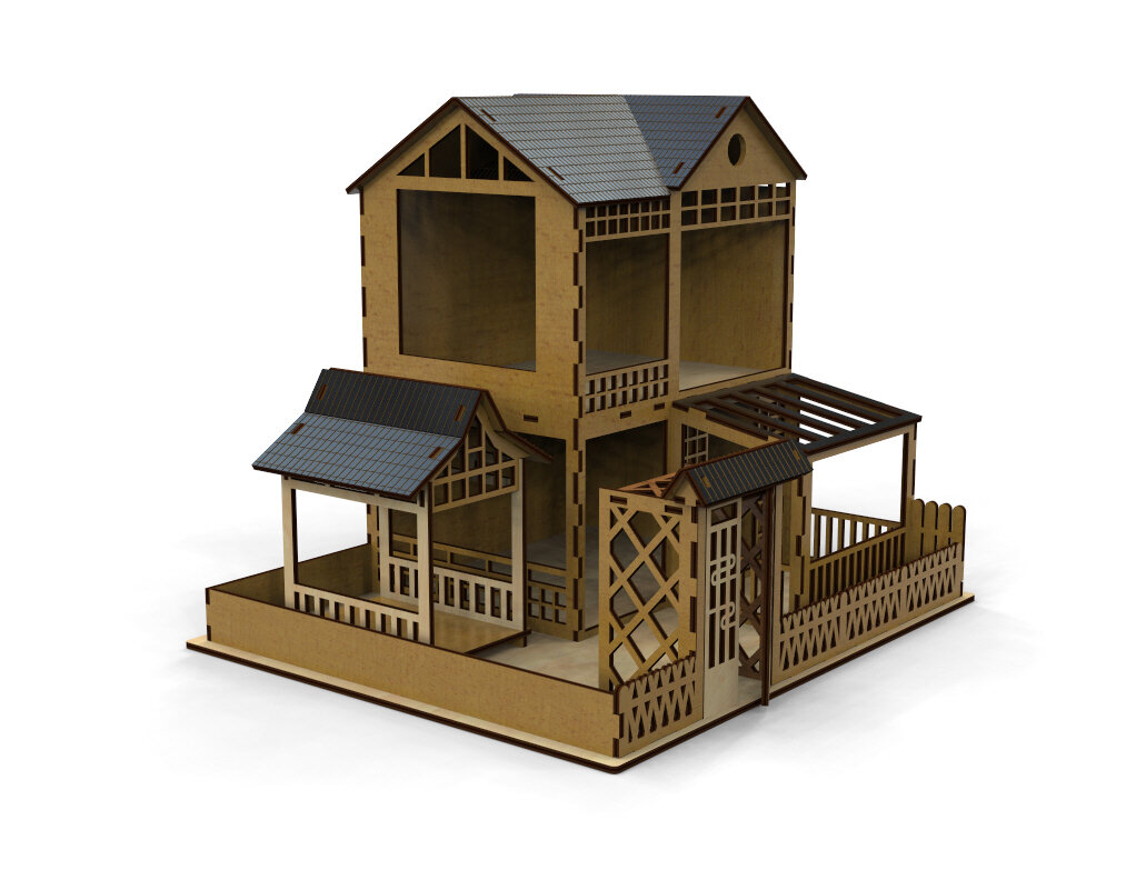Кукольный домик с двориком и беседкой 50х60х50см. Комплект заготовок из фанеры для самостоятельной сборки и декорирования. информация: