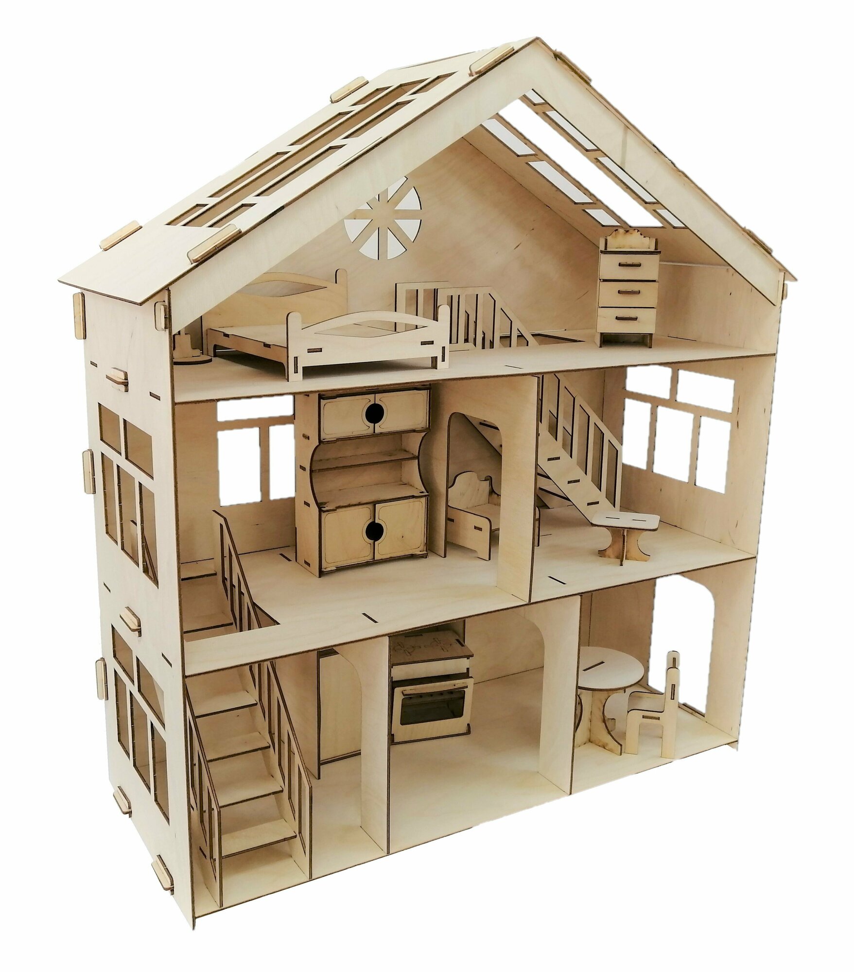 10 цен на Кукольный деревянный домик (3 этажа) для кукол 15-20 см ВхШхГ: 71 х 64 х 27 см