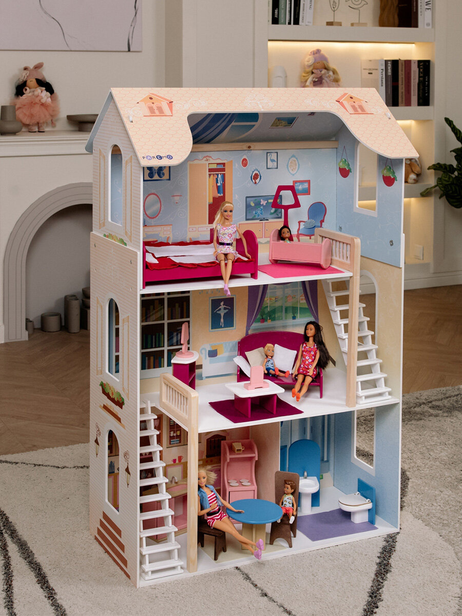 Отзывы на Деревянный кукольный домик Paremo "Шарм" с мебелью, 16 предметов в наборе для кукол 30см. PD315-02