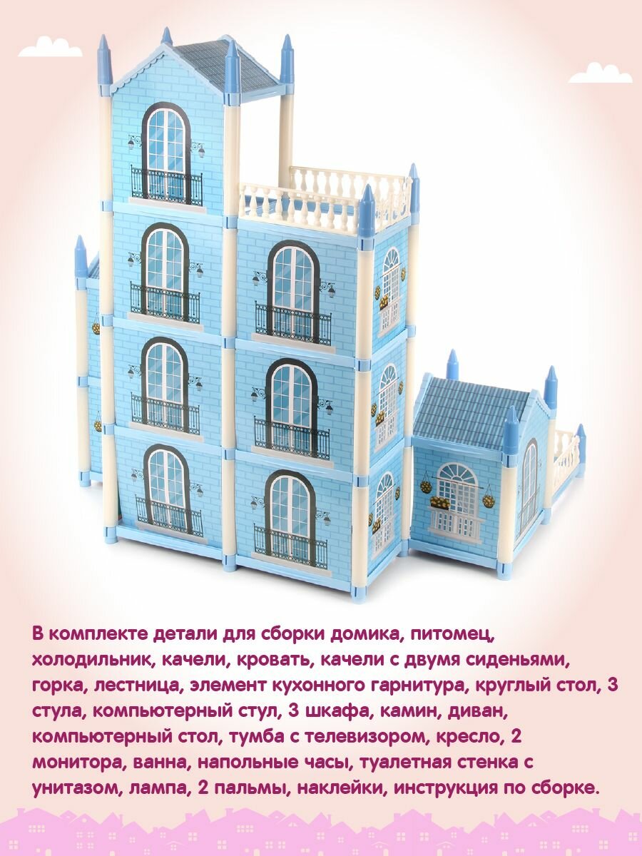 Кукольный домик "Парадиз" с мебелью для девочек, Veld Co / Игрушечный дом для кукол барби с аксессуарами и питомцем