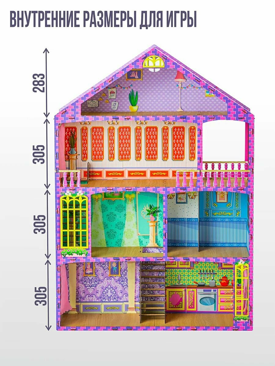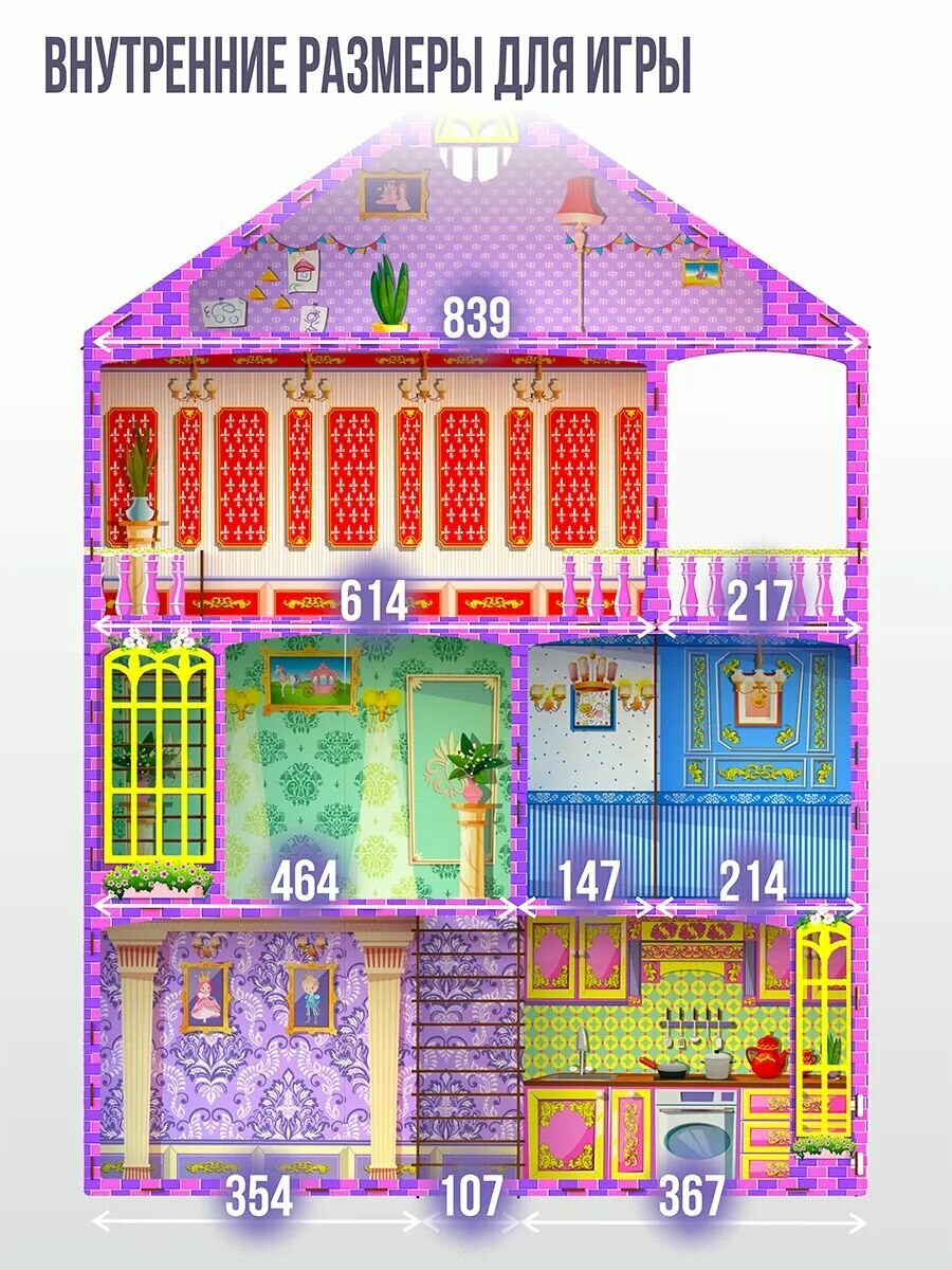 Деревянный кукольный домик Барби большой с чердаком и мебелью информация: