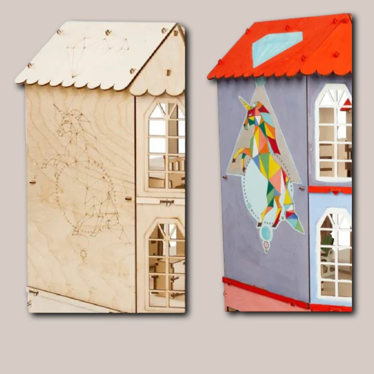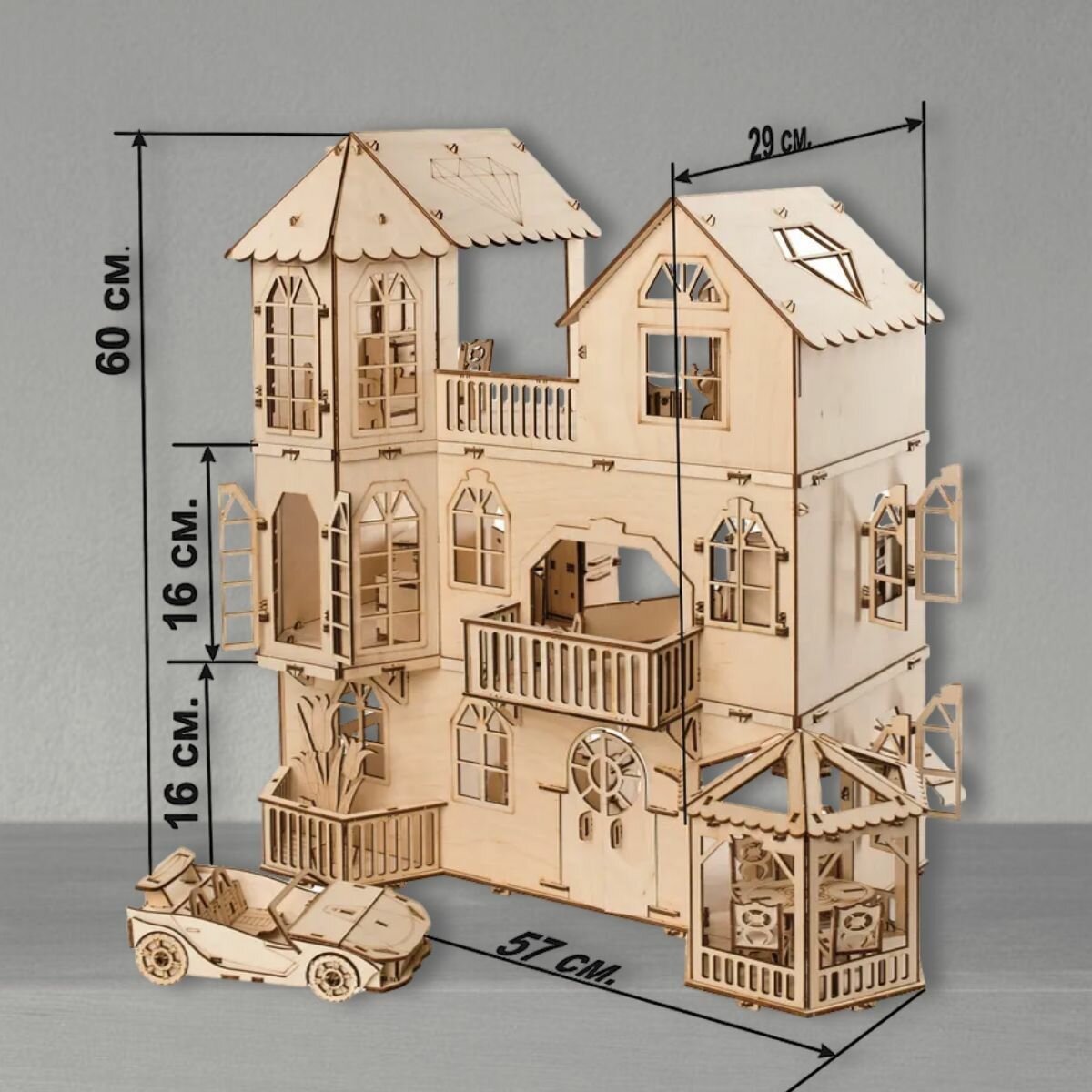 Кукольный домик с мебелью, автомобилем и беседкой 57х29х60 см, сборная деревянная модель Чудо-дерево информация: