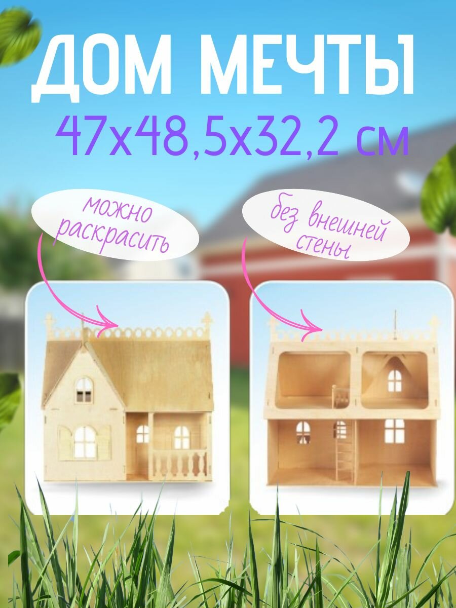 Кукольный домик 48х33х47 см, сборная деревянная модель Чудо-дерево информация: