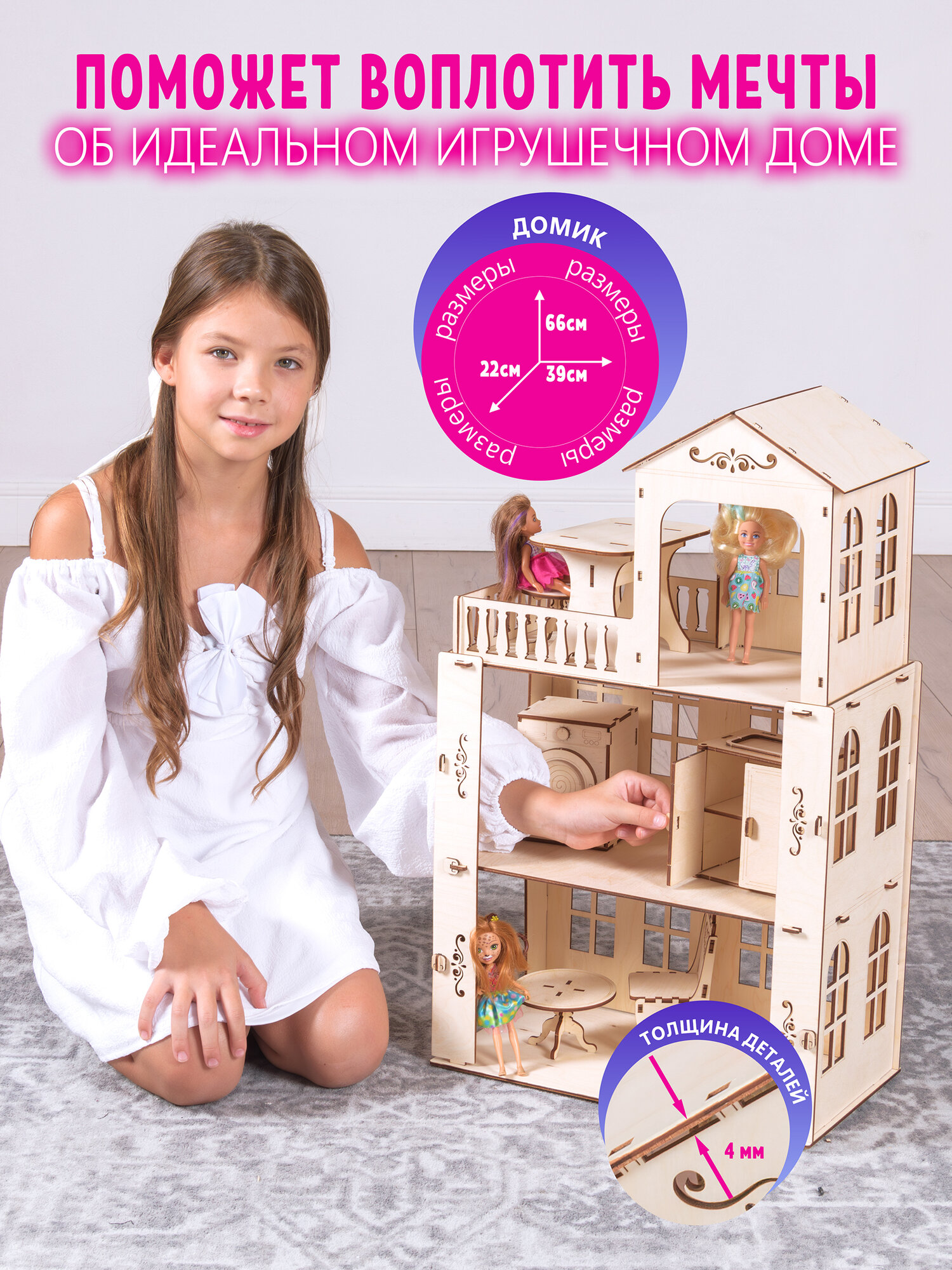 Большой кукольный домик без мебели информация:
