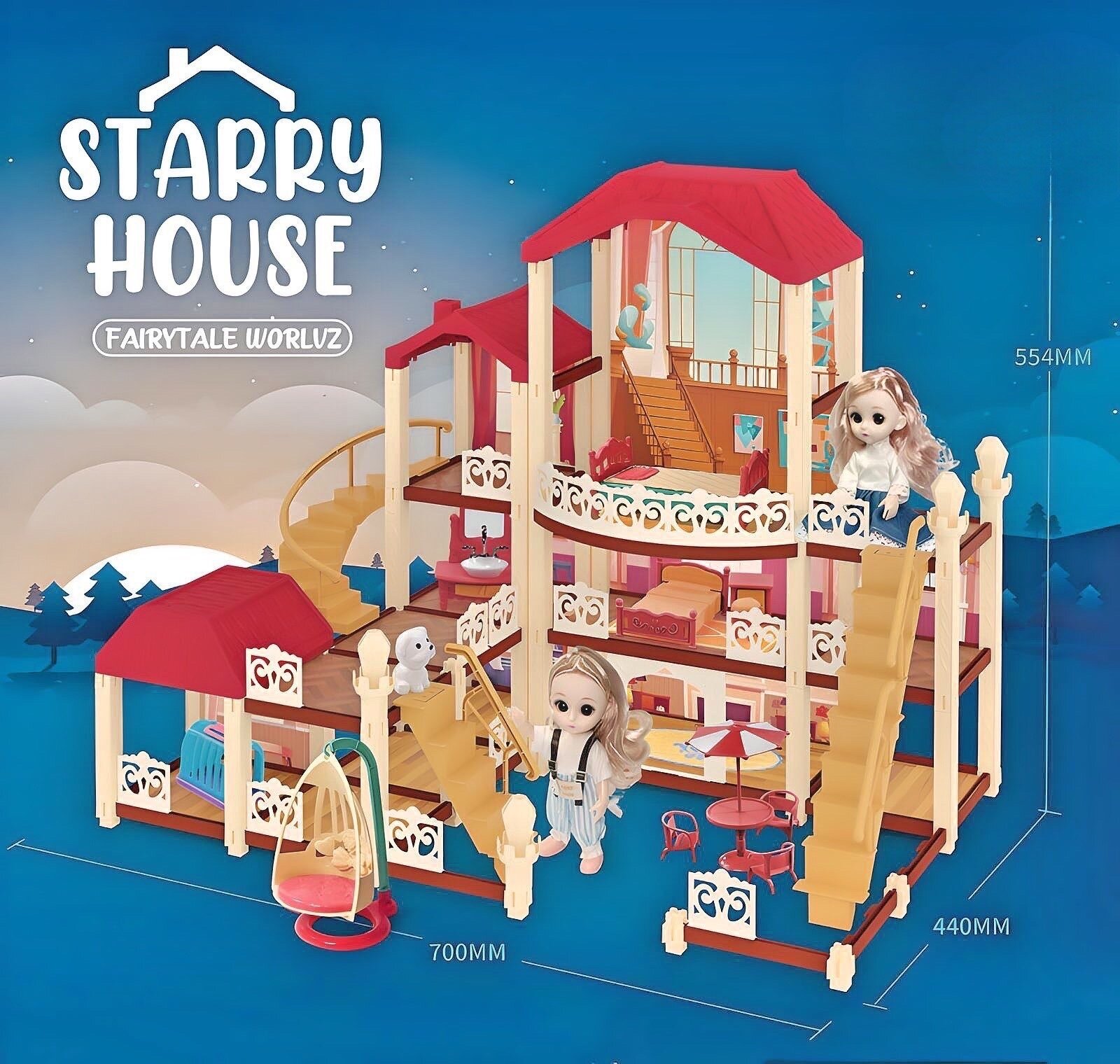 10 цен на Кукольный домик "STARRY HOUSE" вила 3 этажа, с мебелью и аксессуарами.