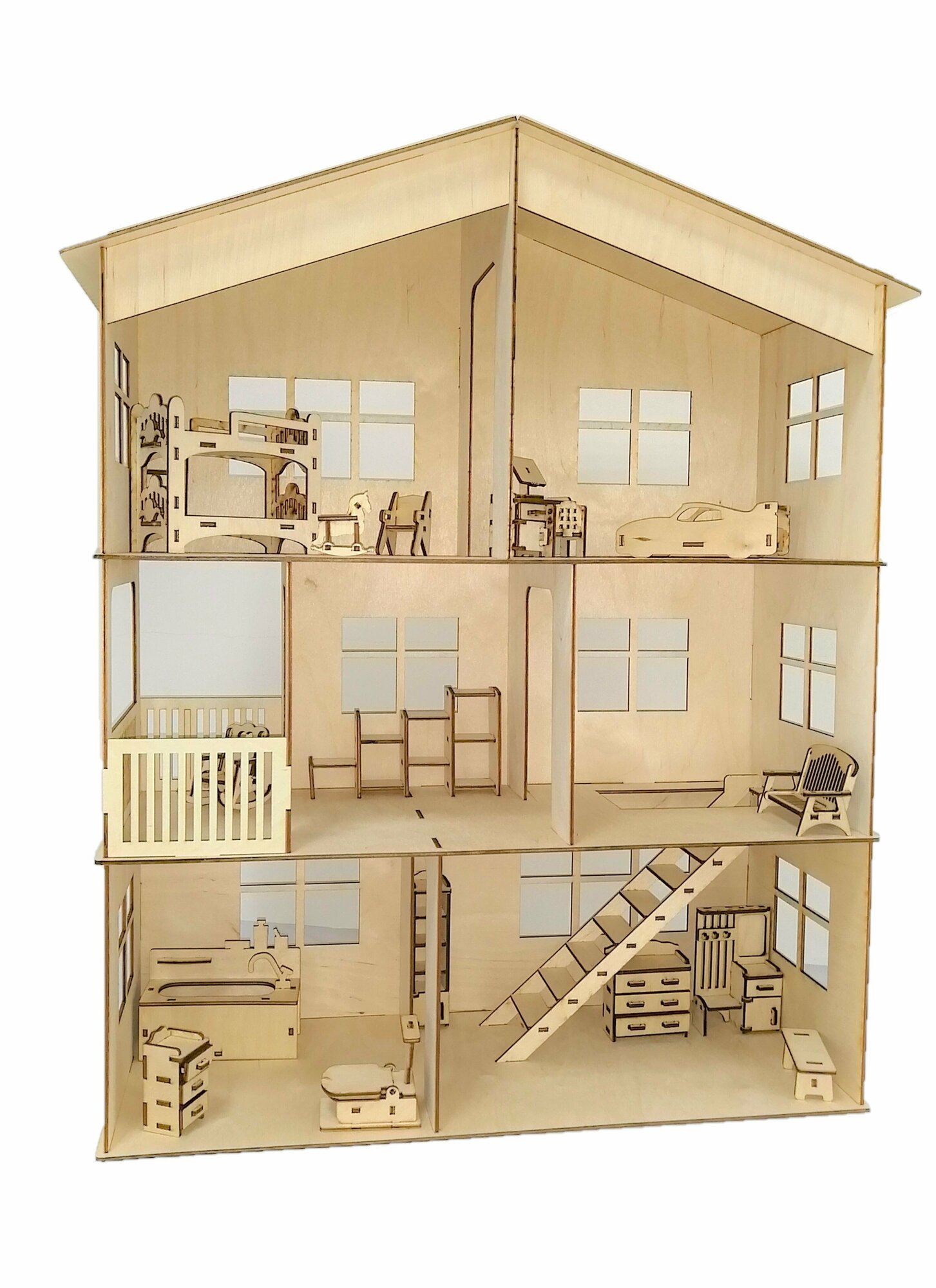 Деревянный Кукольный домик "Малый" (3 этажа) для кукол 7-13 см