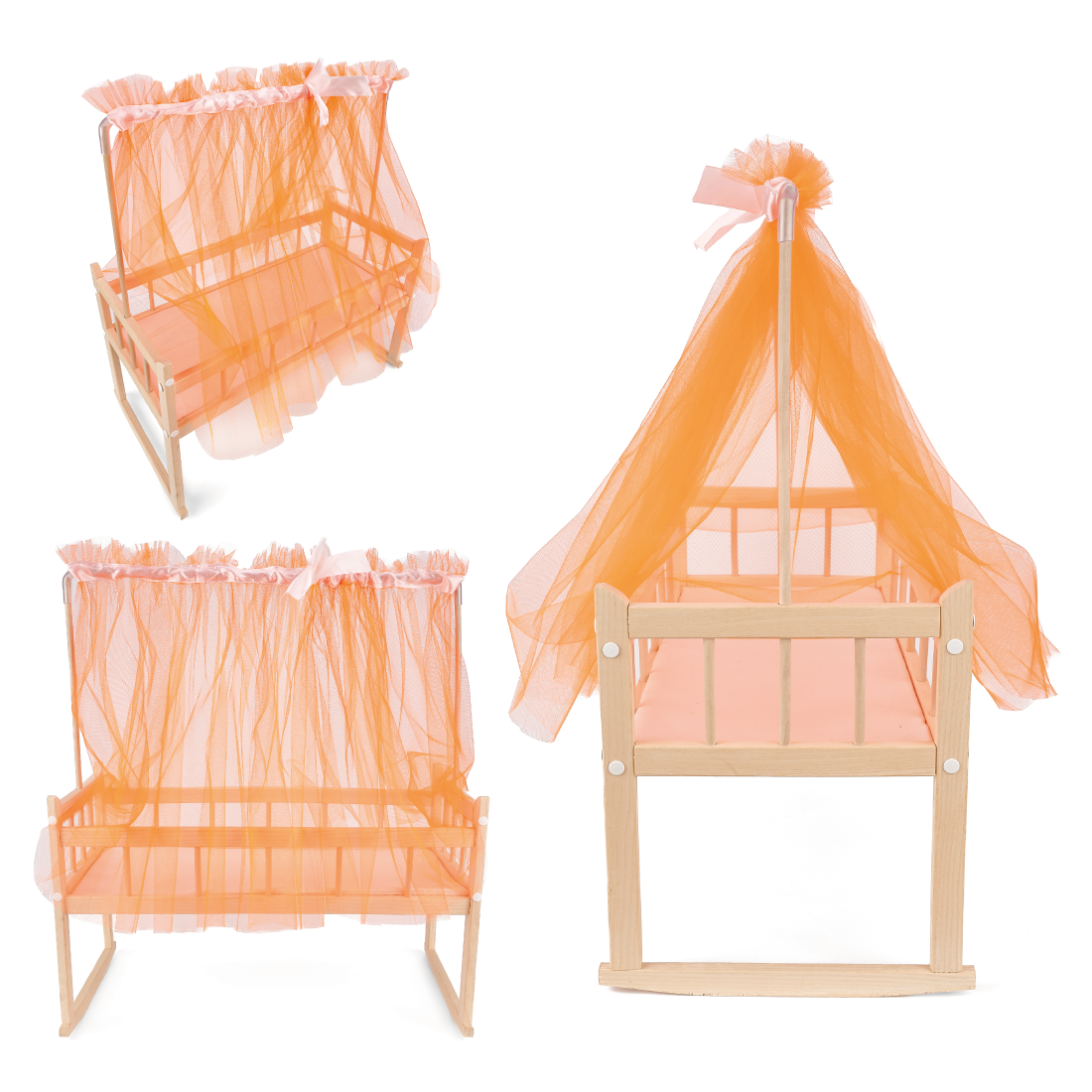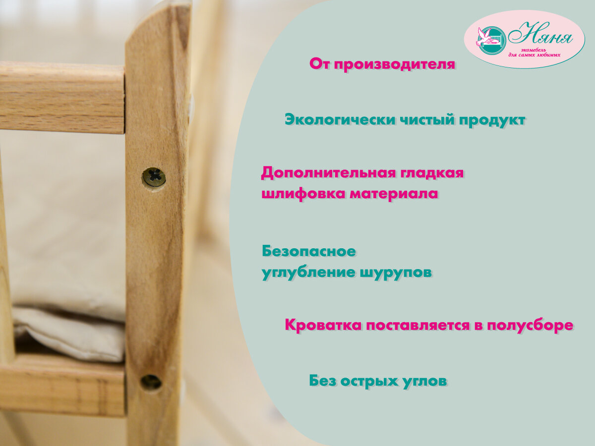 Кукольная кроватка Мила с балдахином, размер 50 сантиметров, эко материал дерево (бук, дуб и массив ясеня) информация: