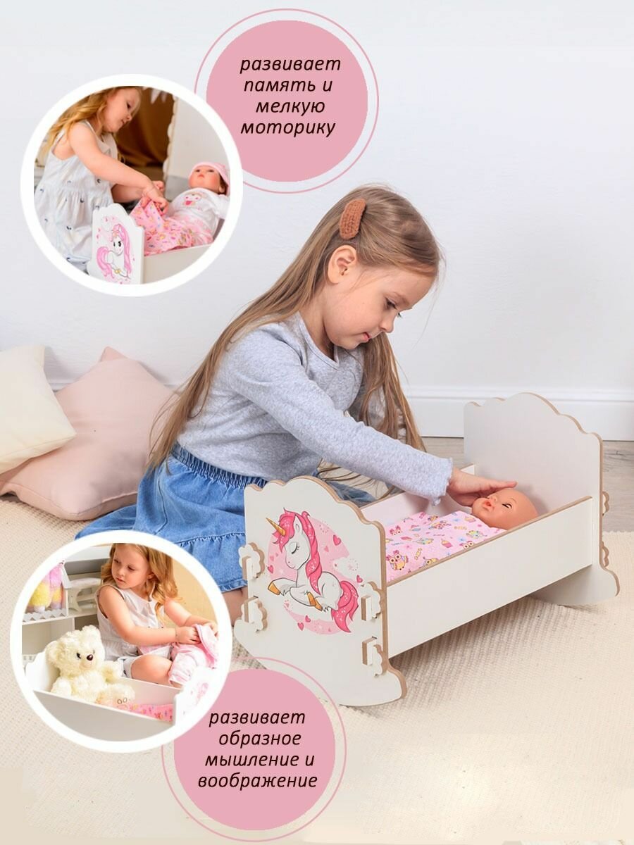 Отзывы на Кроватка-качалка игрушечная люлька детская деревянная для куклы 41 см из ламинированного МДФ Единорог