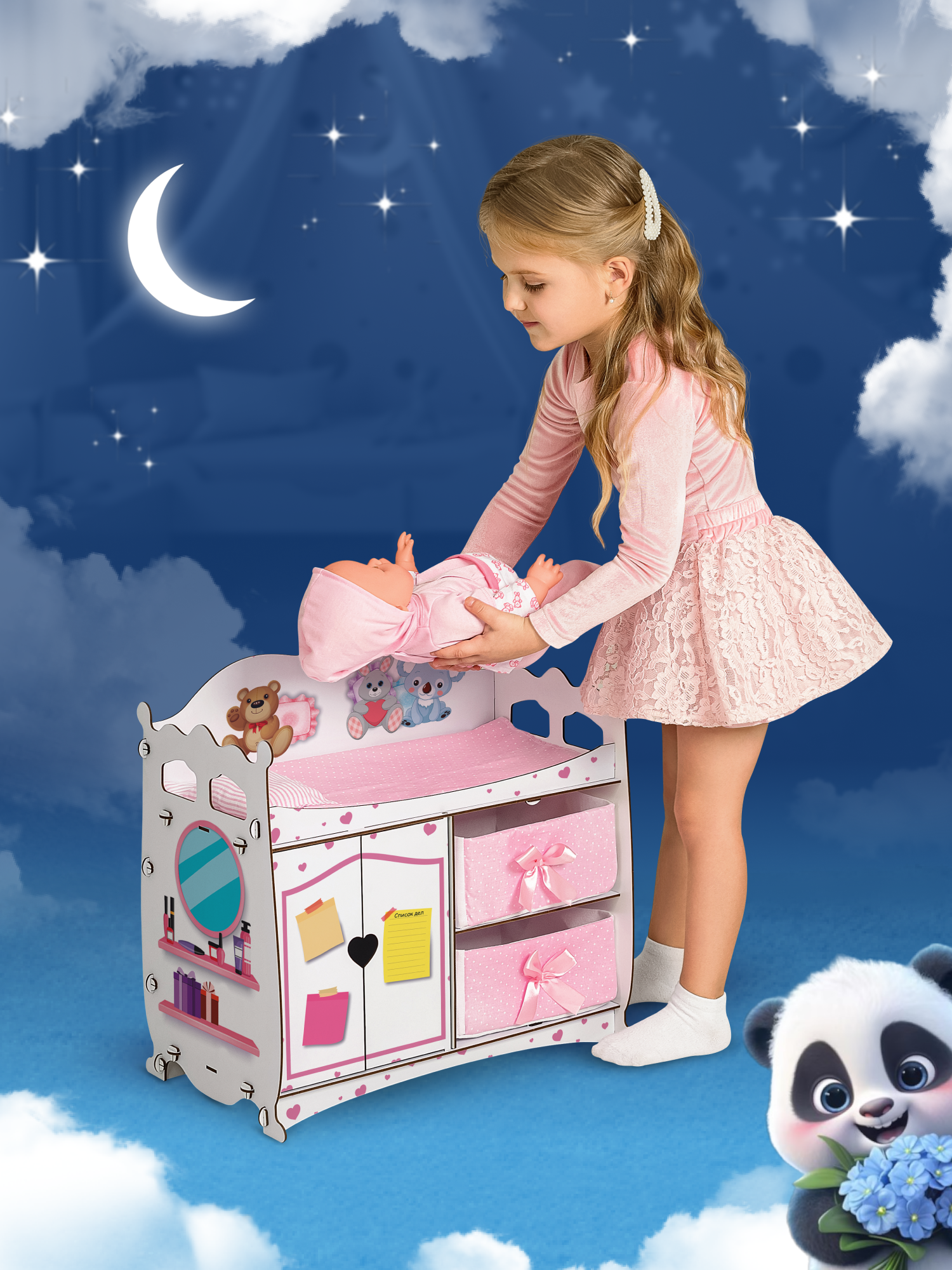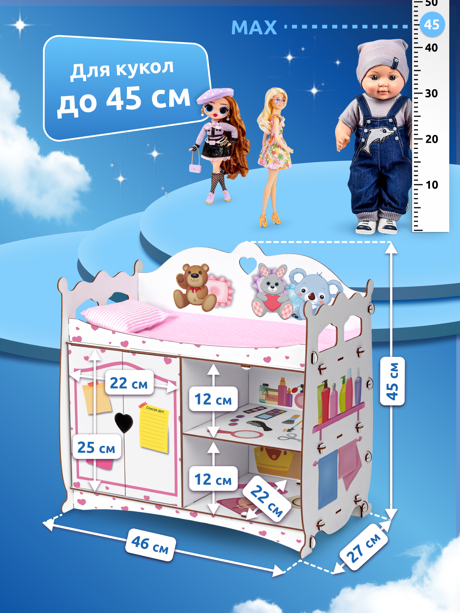 Мебель для кукол MEGA TOYS серия манюня детские игрушки для девочки пеленальный шкаф домик кроватка деревянная Интерактивный информация: