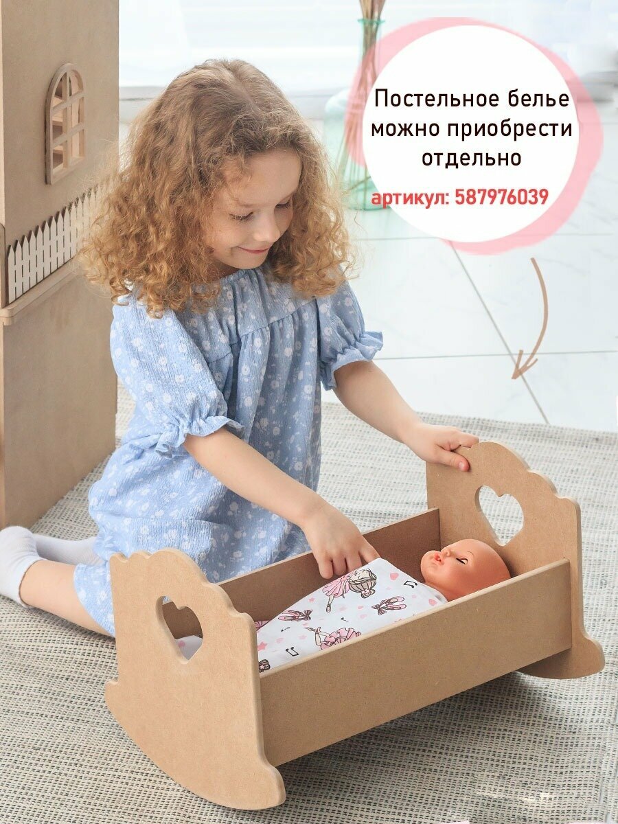10 цен на Кроватка - качалка для куклы 41 см игрушечная люлька детская деревянная без окрашивания / Без постельного белья