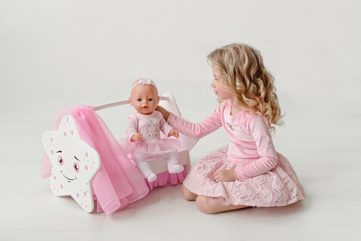 Мебель для кукол деревянная 47 см МАНЮНЯ игрушечная кроватка для куклы звездочка MEGA TOYS / аксессуары для кукол reborn, реборн