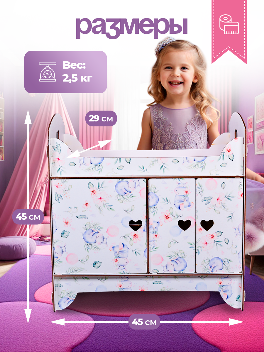Отзывы на Кроватка со шкафом игрушечная детская для кукол деревянная Бегемотики / Постельное белье в подарок