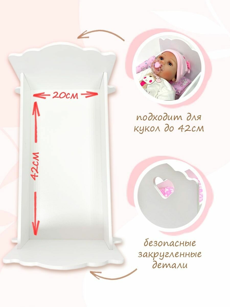 Кроватка - качалка для куклы 41 см игрушечная люлька детская деревянная белая / Постельное белье в подарок информация: