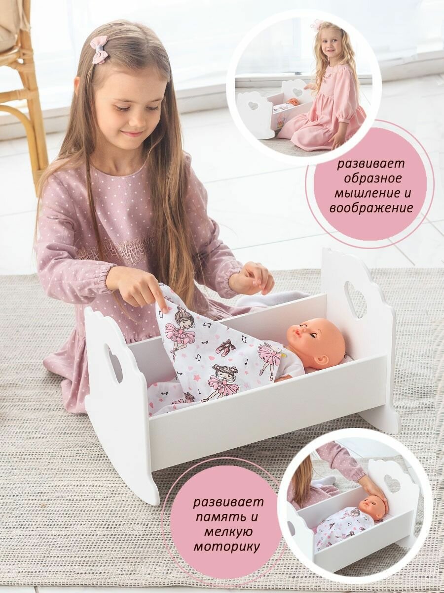 10 цен на Кроватка - качалка для куклы 41 см игрушечная люлька детская деревянная белая / Постельное белье в подарок