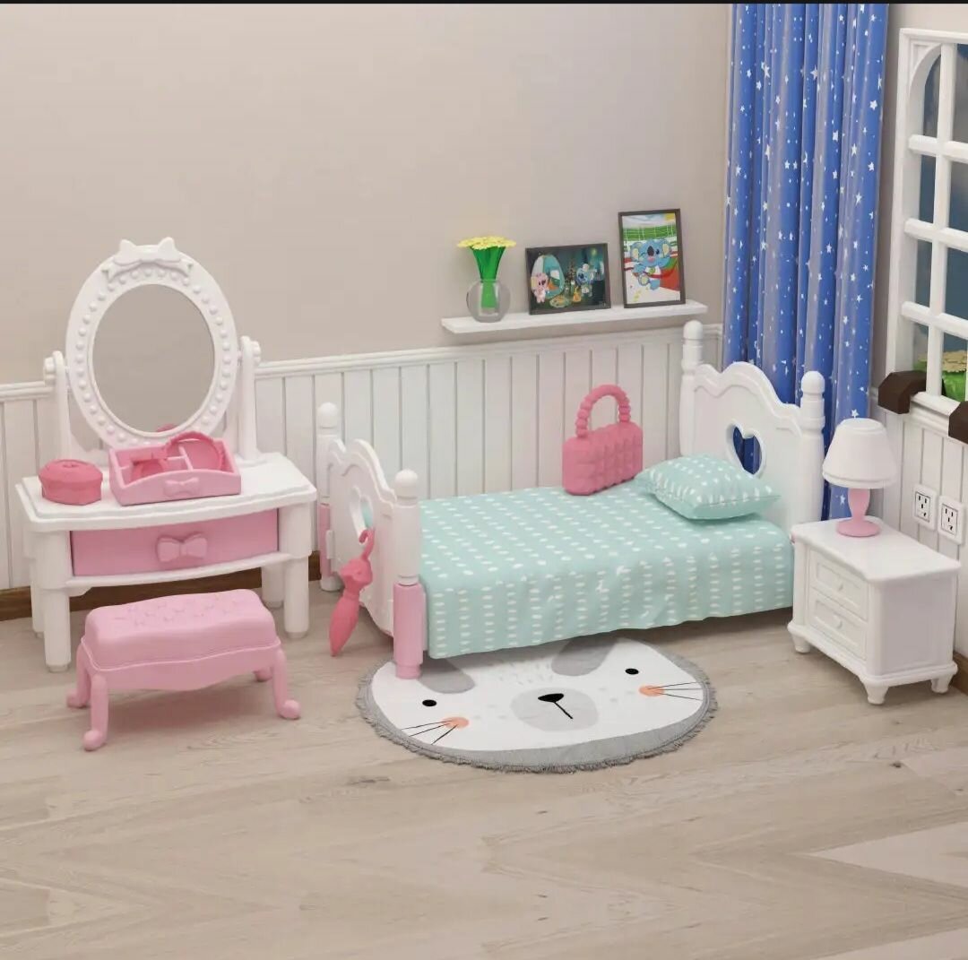 Кукольная мебель для домика , спальый гарнитур комната для кукол и бархатных фигурок информация:
