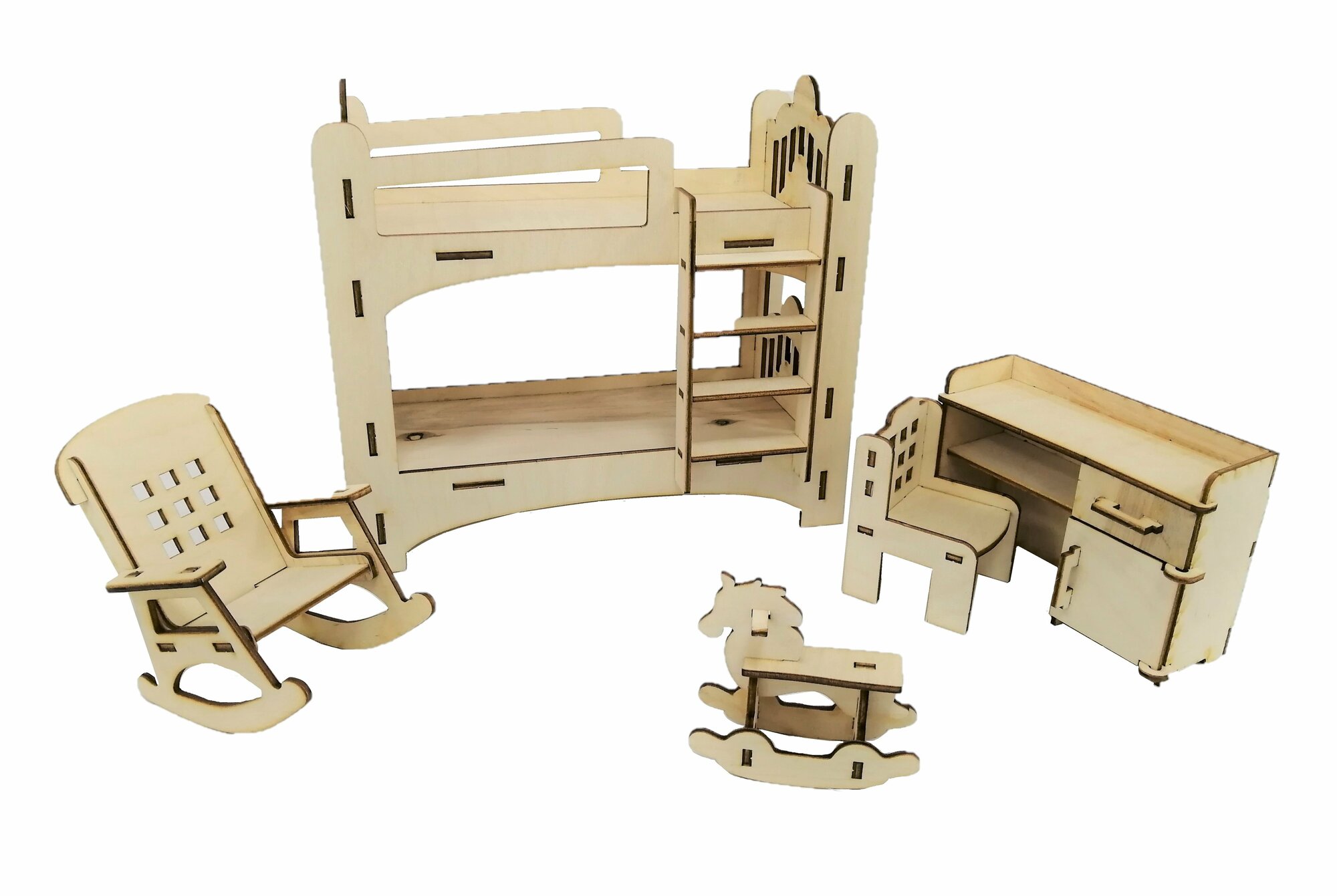 Деревянная детская мебель для кукольного домика Спальня для кукол 30 см, 5 предметов