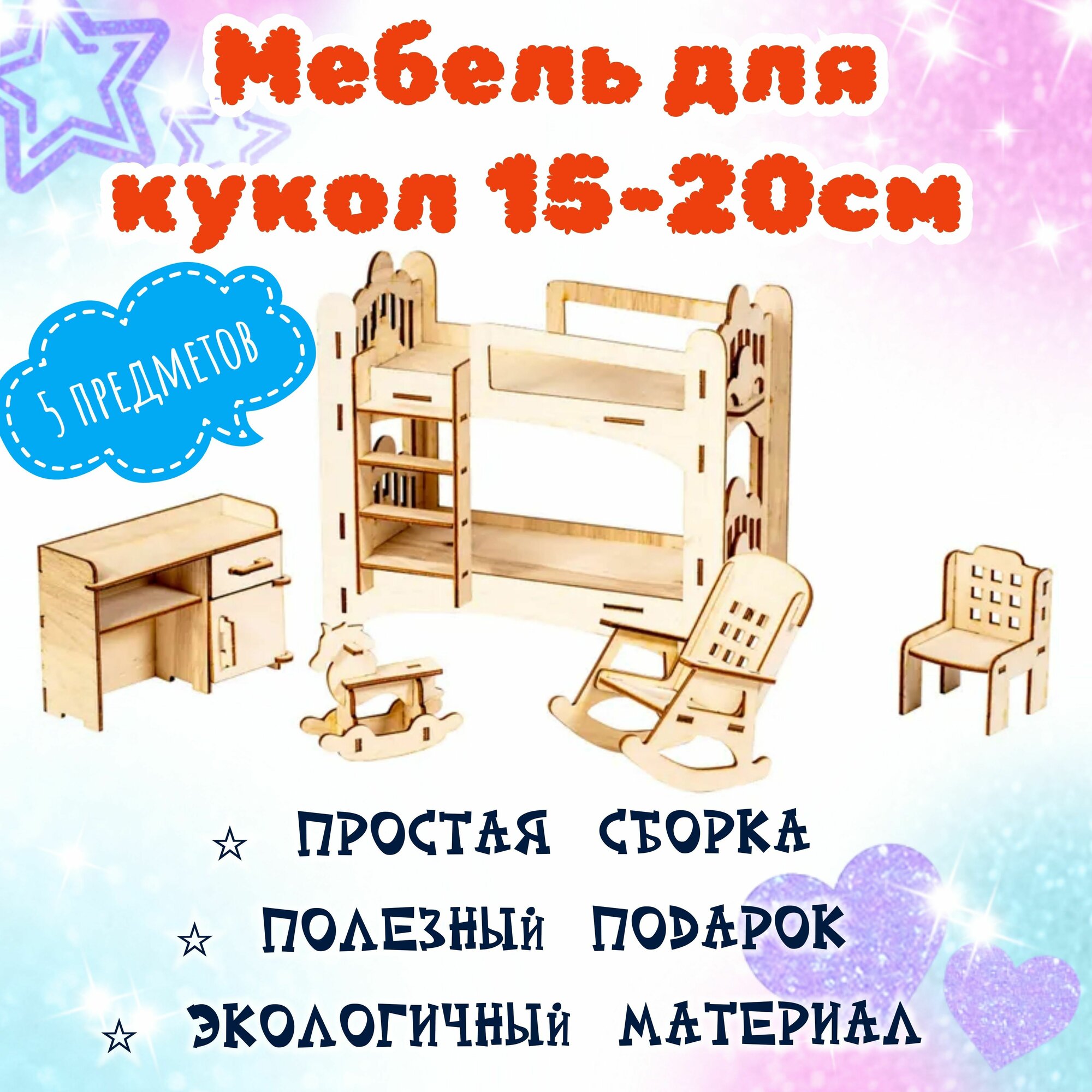 10 цен на Деревянный набор мебели в кукольный домик - 5 предметов для кукол 15-20 см
